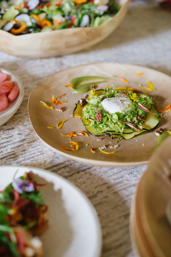 With your favorite playlist piping in the background and the sun beginning to set, take pleasure in going analog and hosting an al fresco gathering. Ditch disposable wares for hand-crafted, sustainable pieces that celebrate the art of slow living (heck, I sometimes use my china and silver). Set the table, light some candles, and gather and feed the ones you love. For inspiration, take a look at our: