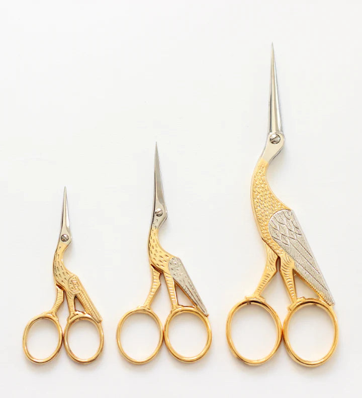 The Crane scissors have a lovely shape, with finely engraved details, they feature nickel-plated blades and gold-plated handles. A thin layer of 24 karat gold is applied to the scissors to have a beautiful gold finish that makes them shine! Crafted in Italy from hard tempered steel, these little shears are extremely sharp – perfect for cutting the ribbon and other textiles, without becoming dull. Refined blades also make them ideal for embroidery and other detailed work.