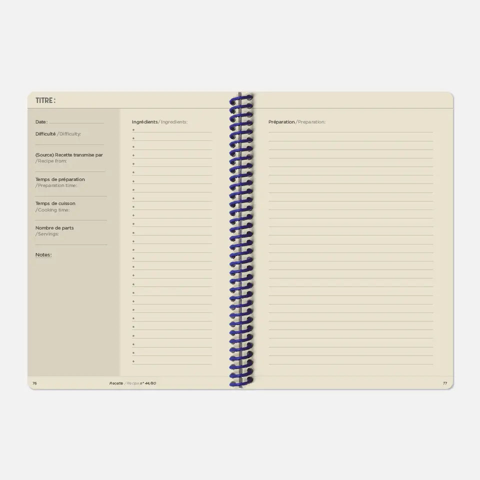 Write down, preserve and pass on your favorite recipes! Because you have a thousand talents, this book contains the essentials for keeping and passing on all your favorite recipes. We have put together a list of seasonal fruits and vegetables, grids for storing your favorite menus and 80 pages of recipes to fill in so that you never forget them.