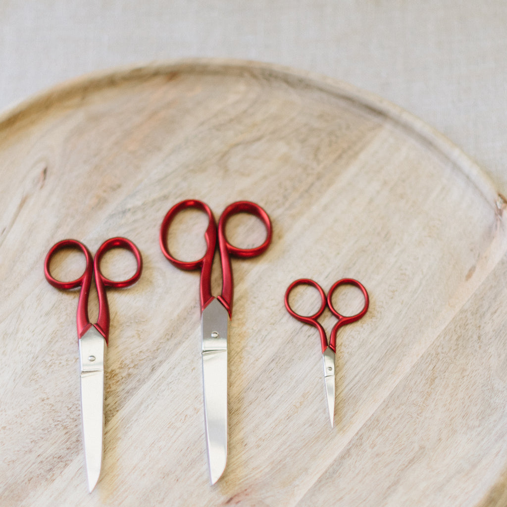 Ideal for textiles or professional use, our scarlet shears are available in three sizes: Small, Medium and Large scissors.