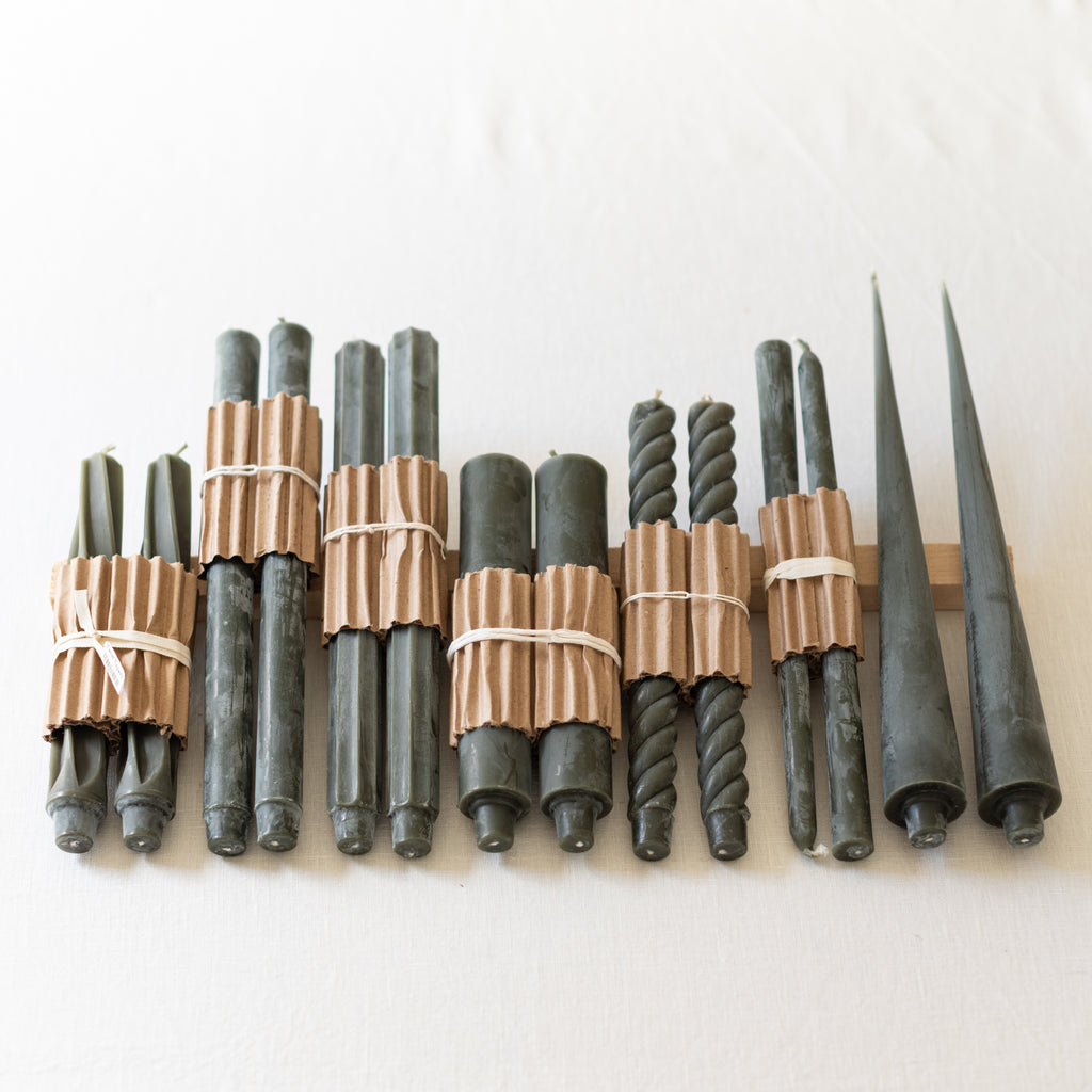 Our best selling Taper Candles, in Antique Green. Each candle is hand poured and individually finished in New York State. Lovingly made from 100% pure North American beeswax. Sold in pairs.