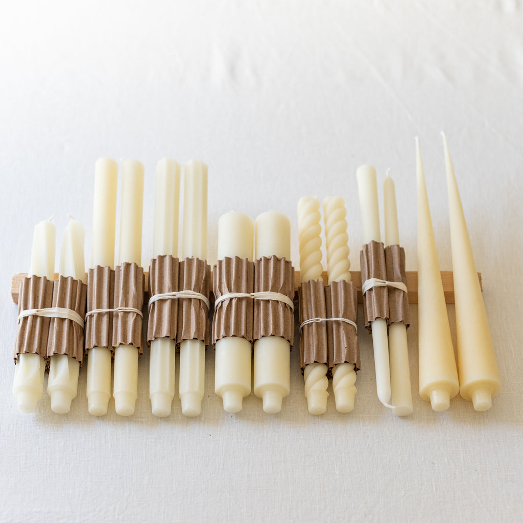 Our best selling Taper Candles, in Cream. Each candle is hand poured and individually finished in New York State. Lovingly made from 100% pure North American beeswax. Sold in pairs.