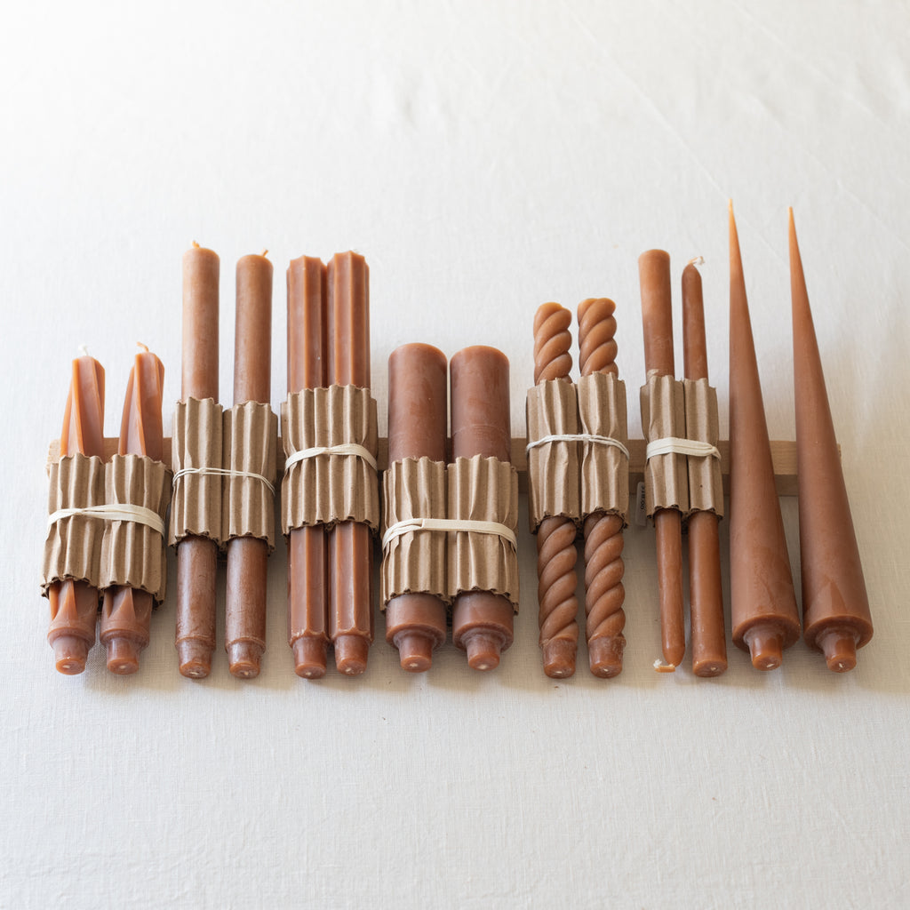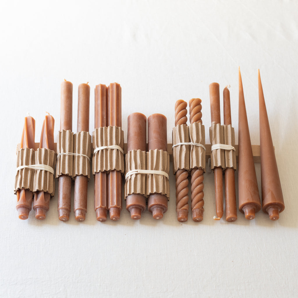 Our best selling Taper Candles, in Terracotta. Each candle is hand poured and individually finished in New York State. Lovingly made from 100% pure North American beeswax. Sold in pairs.