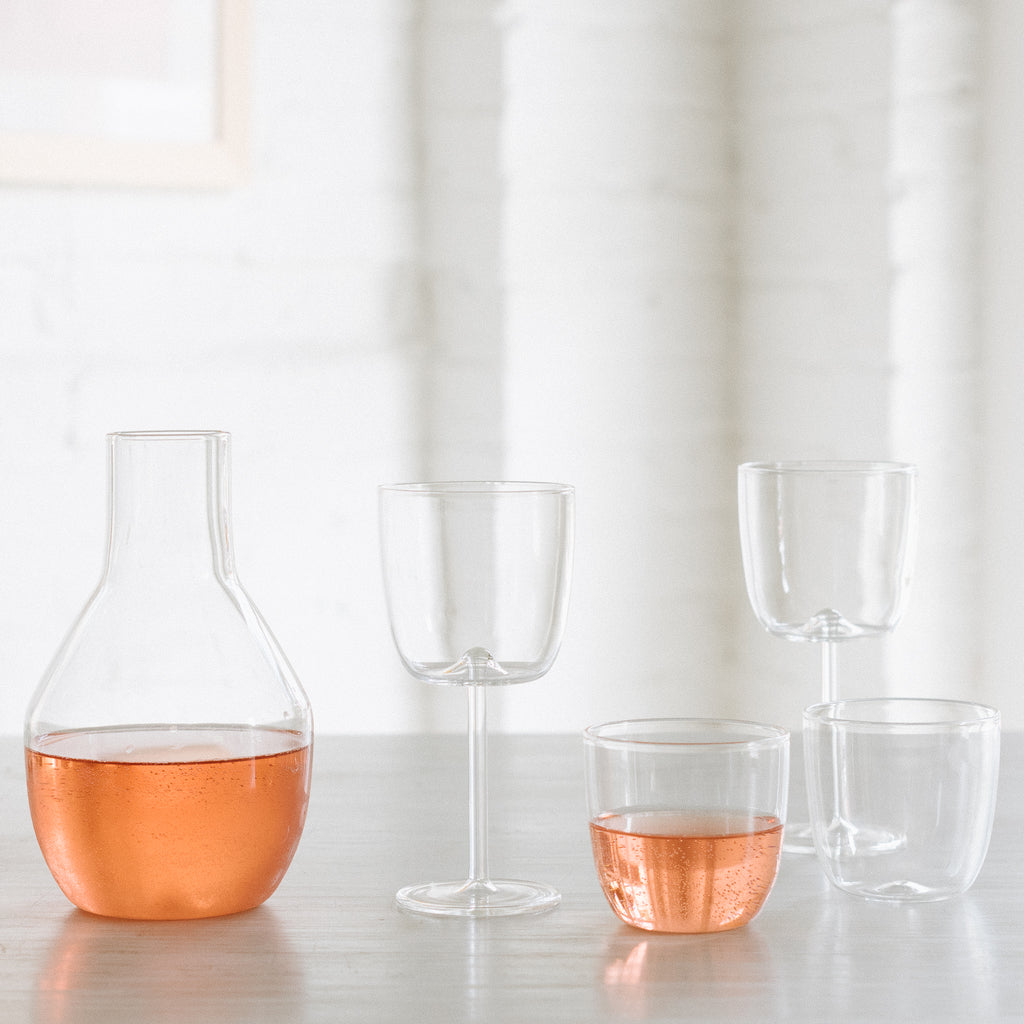 This piece of glassware is crafted from Borosilicate glass known for its pure and resistant quality, shaped with traditional mouth blowing technique; the innovation of design comes from modern shapes inspired by aesthetics of rationalist and modernist architecture whilst respecting its functionality. The result gives each piece a simple elegance.