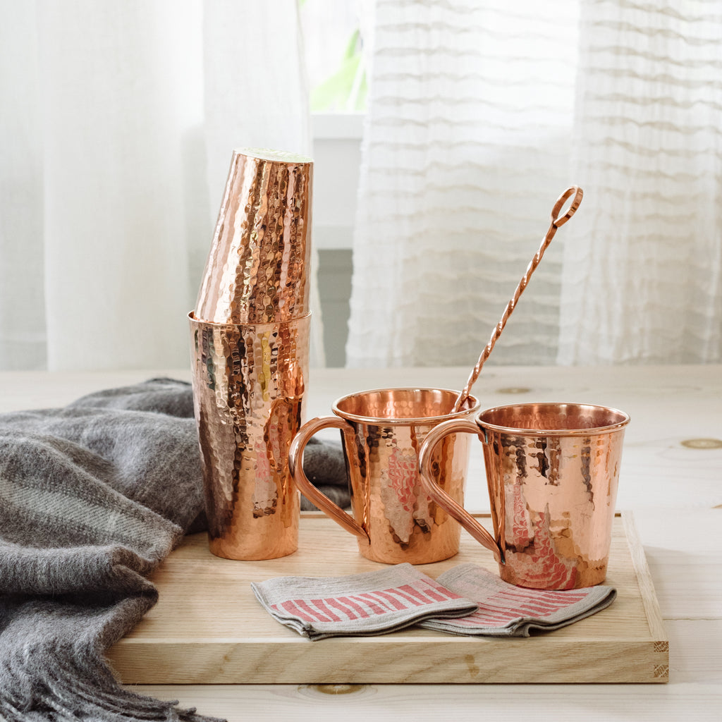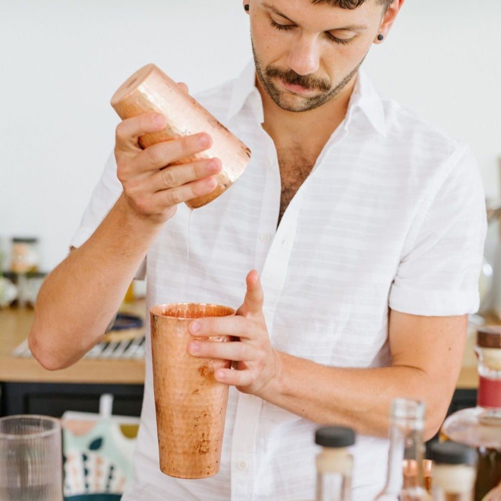 Our pro bartender friends say the two-piece Boston shaker is their choice for crafting the perfect cocktail. It does not get any prettier than this gleaming copper set. Handcrafted in Mexico of heavy gauge 100% recycled copper, the feel and function of this tool are pure luxury. This stunner deserves a special home. Any ideas?