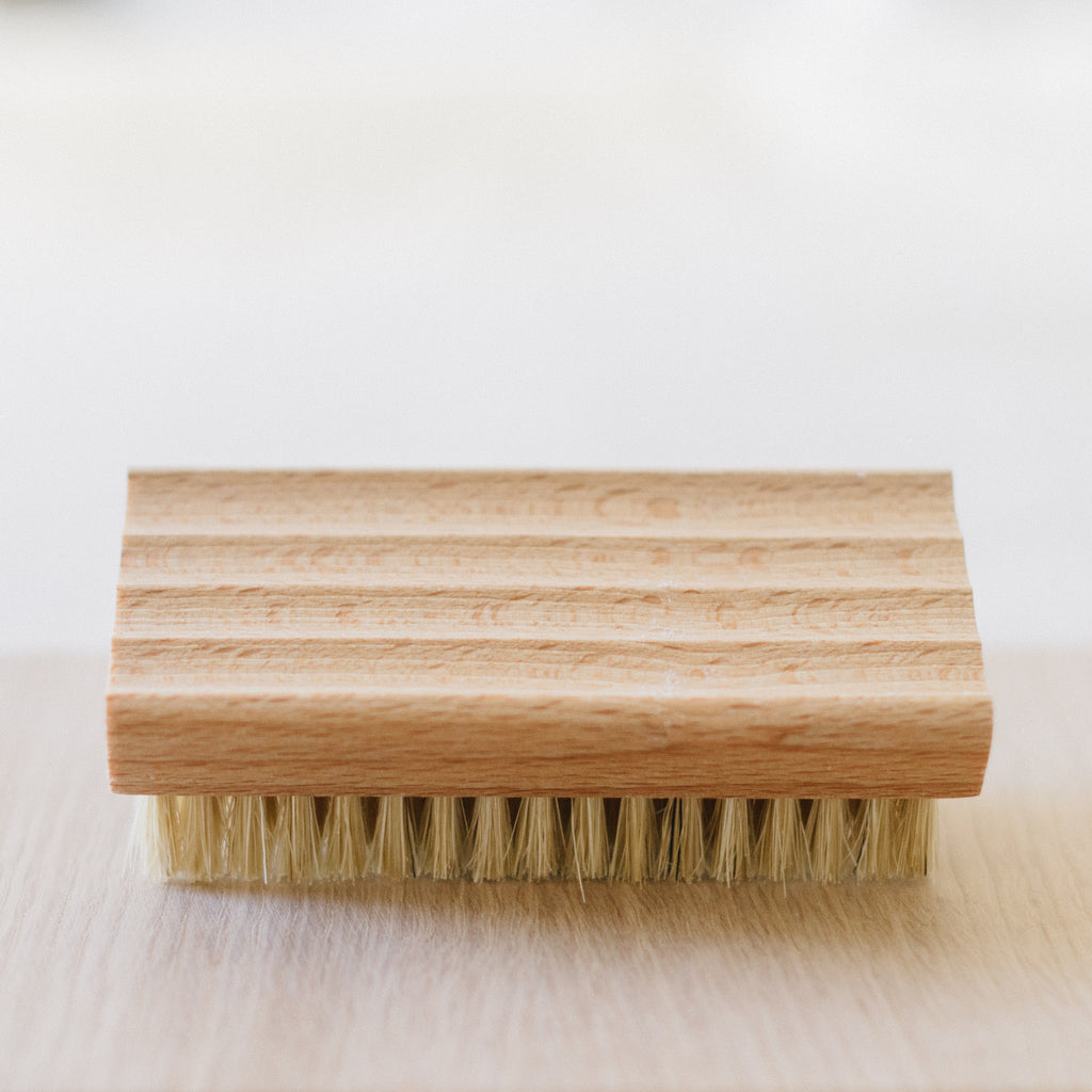 Redecker's oiled beechwood Nail Brush & Soap Holder keeps the bathroom sink neat and tidy. Simply place your soap bar on the top of the brush when not in use! Strong natural bristles ensure hands are thoroughly cleansed every time.