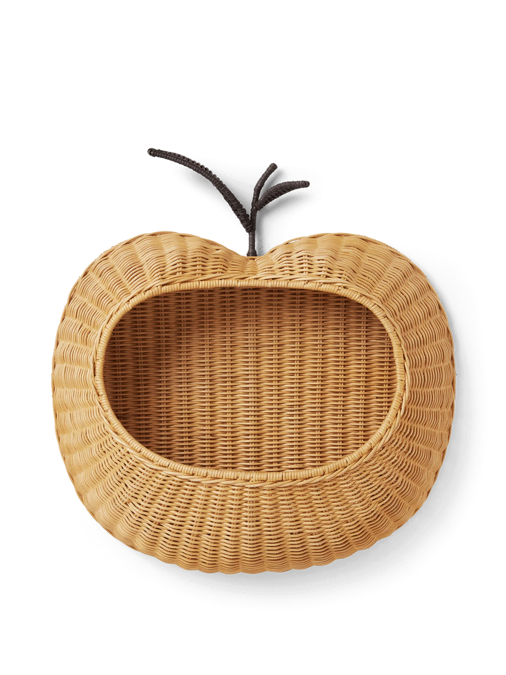 The Apple Braided Wall Pocket is an enchanting storage solution, whimsically shaped like an apple. Meticulously crafted from rattan, a warm and natural material celebrated for its durability and appealing texture, this wall pocket serves as a practical storage solution. It fosters a creative yet organised environment by neatly holding books, toys, or other small items. Adorned with a distinctive ornamental leaf braided in green rattan, it adds a decorative touch, infusing your child's space with charm and playfulness.