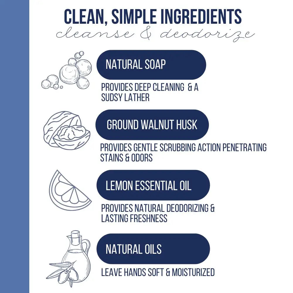 Tackle stubborn odors and grime with Fisherman Hand Scrub, a powerhouse cleanser trusted by professional chefs and home gardeners alike. This expertly formulated blend combines crushed walnut husks for effective scouring action with pure soap and bright lemon essential oil to eliminate persistent smells from fish, garlic, onions, and garden soil. Equally effective on hands, cutting boards, and cast iron, it cuts through the toughest kitchen and outdoor residue while leaving skin smooth and refreshed. From boat to kitchen to garden, this multi-purpose scrub delivers the deep-cleaning performance that's earned recognition in Bon Appétit, Good Housekeeping, and Epicurious.