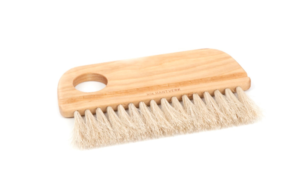 A beautifully crafted baker's brush in birch and horse hair. Can be used to spread the flour evenly over the baking board, removes excess flour from the bread and clean the work surface. Since horsehair is heat resistant it can be used in the oven. Hand crafted in Sweden Length: 5.75"