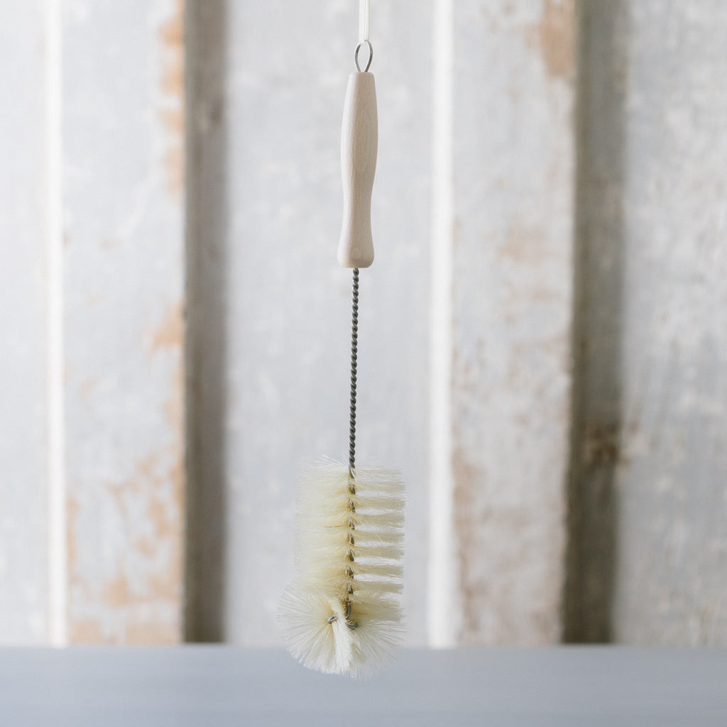 Intended for cleaning soda and milk bottles, specialty glassware, pitchers and small mason jars; reach, scrub and spin for a thorough wash. Lightweight and easy to maneuver, flexible wire body allows for effortless precision cleaning when accessing narrow or hard-to-reach areas in specialty glassware.