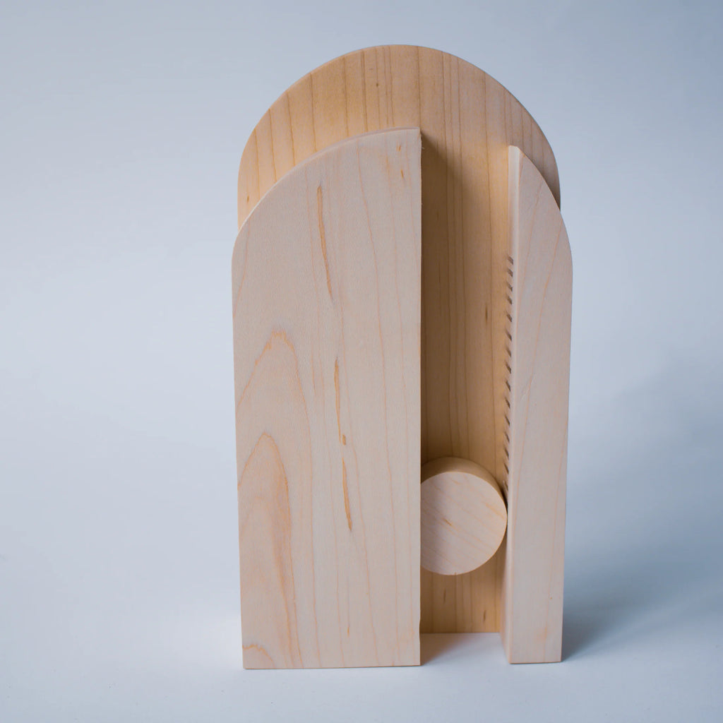This Dutch broom hanger uses gravity to hang items. Simply push up to release the ball, and pull down to tighten it. Made from urban, reclaimed lumber, you can enjoy the sustainable beauty of Kentucky right in your home. Be sure to also find the right broom to go with it.