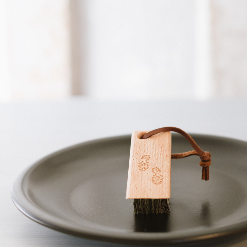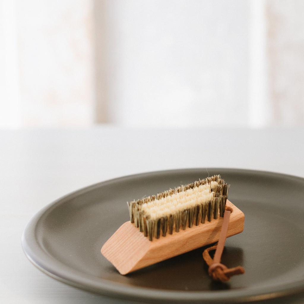 Oiled Beechwood, tampico fibre bristles with leather strap.