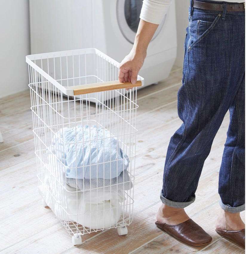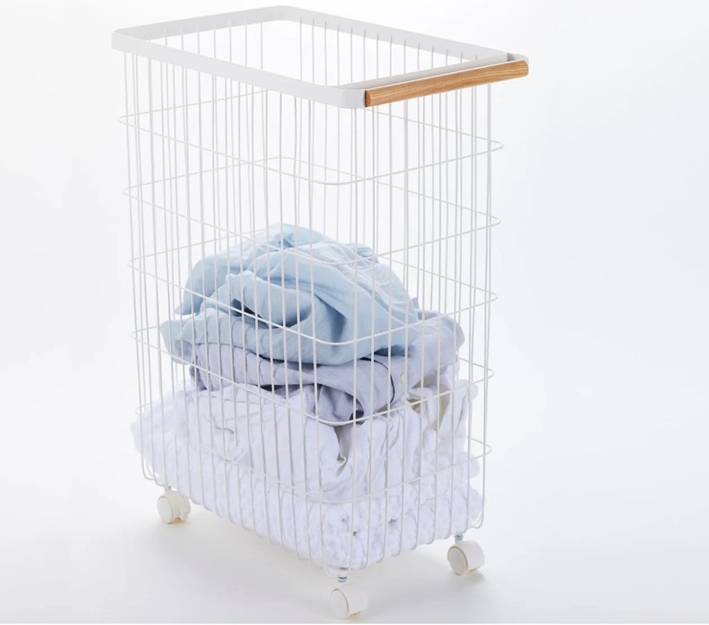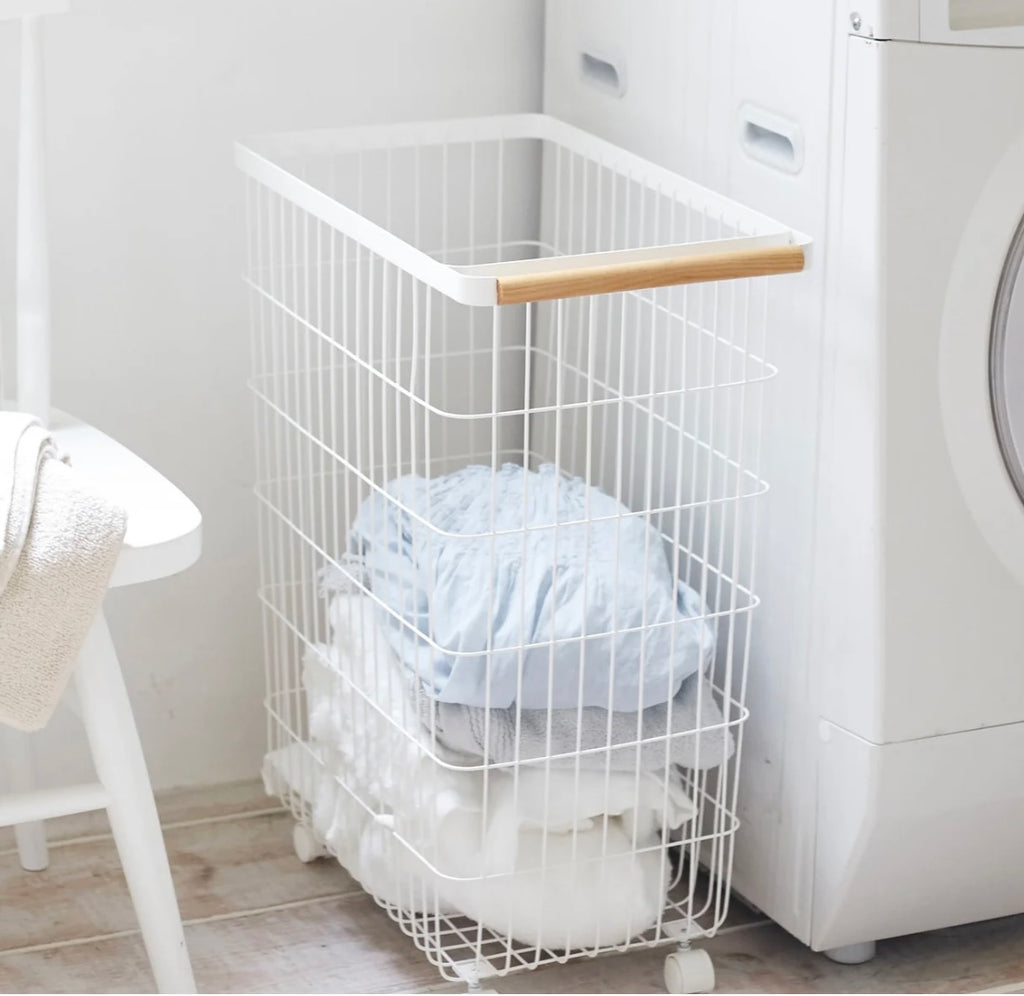 Scoot your laundry from one destination to the next with this tall wire laundry hamper, complete with a handle and its very own set of wheels. The deep frame accommodates almost twice as much laundry as our largest dual-handled laundry basket. With no liner you have to worry about keeping clean, and a lightweight design for easy mobility, it gives your laundry routine just the lift it needs.