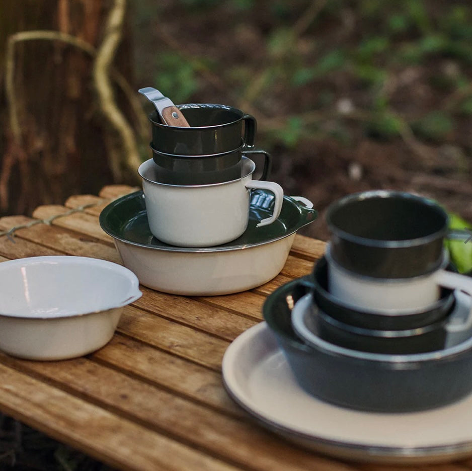 With a low and wide mouth design, it is a good size for soups. The thin edge is smooth and comfortable on the mouth, making it suitable not only for outdoor use but also for everyday indoor use. Enamelware provides excellent heat resistance and durability, while also being odor-resistant and easy to clean, making it ideal for outdoor activities. The use of stainless steel as the base material makes it thin and lightweight.The slit allows it to be hung on hooks for easy drying. Unlike typical enamelware with curled edges, the design prevents water from accumulating, making it dry faster.