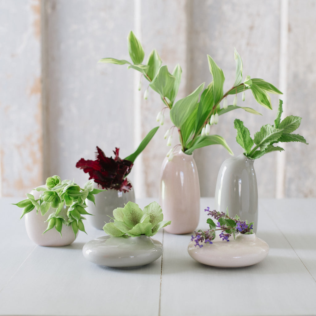 A single-flower vase with playful + organic form, you can enjoy pairing various flowers and plants with SACCO. The mouths - which are at different angles - create interesting motion, highlighting the lively + delicate expressions of plants. The compact size makes it easy to incorporate into various interior spaces.