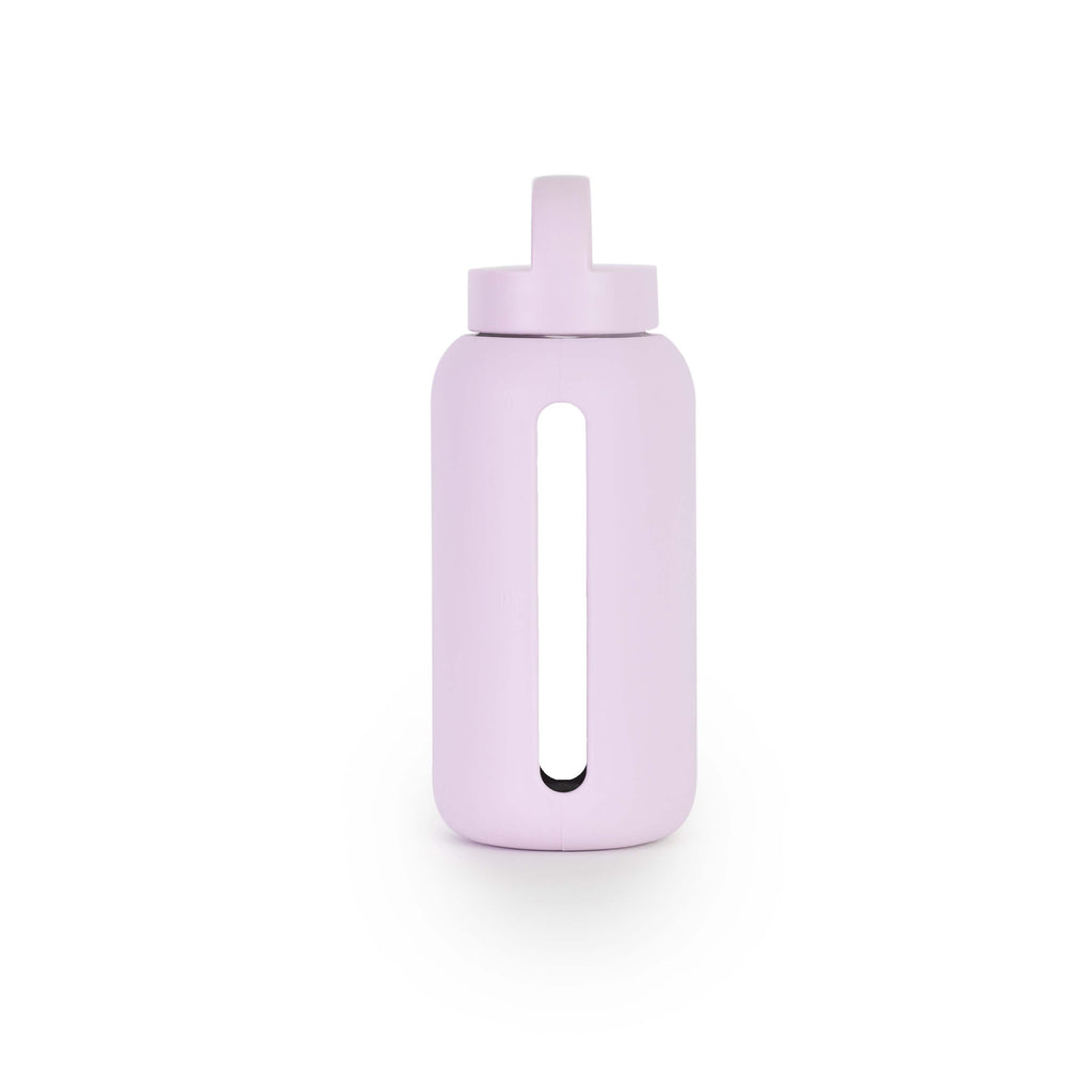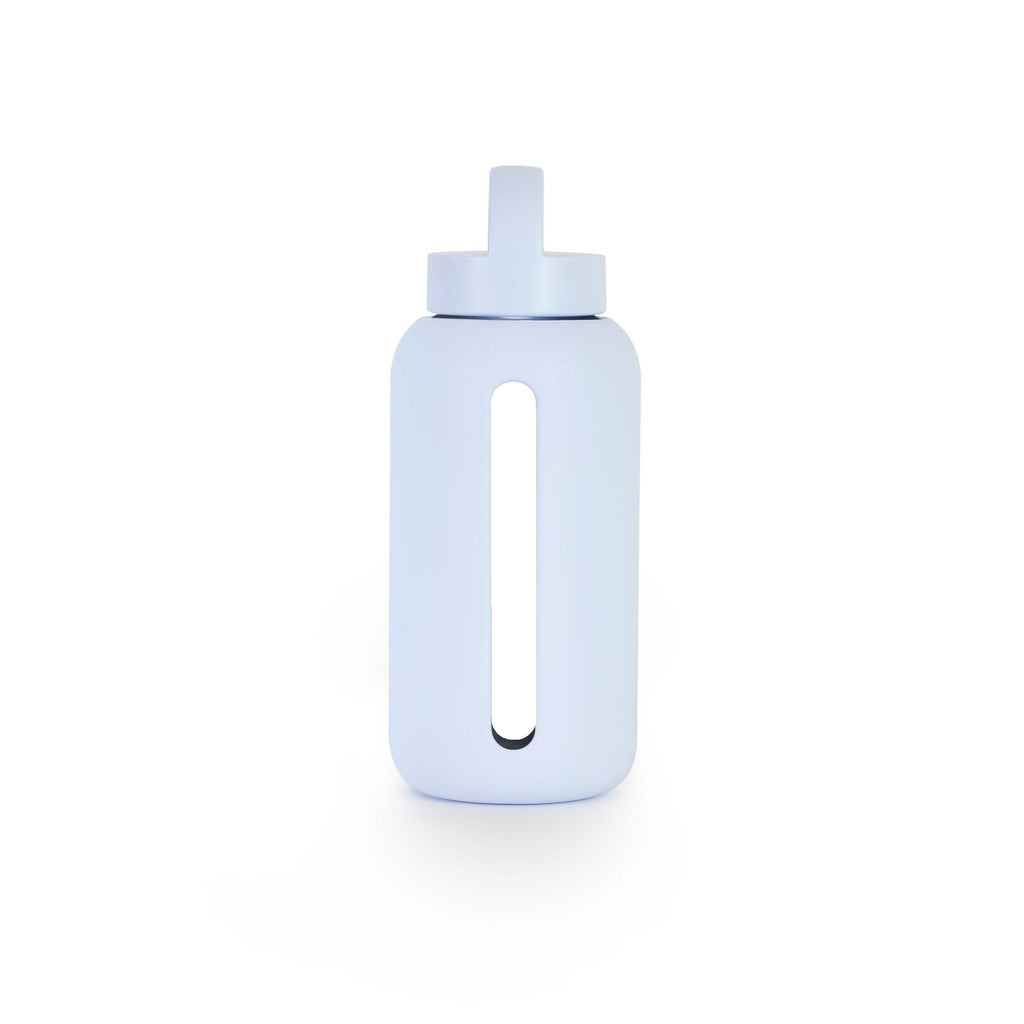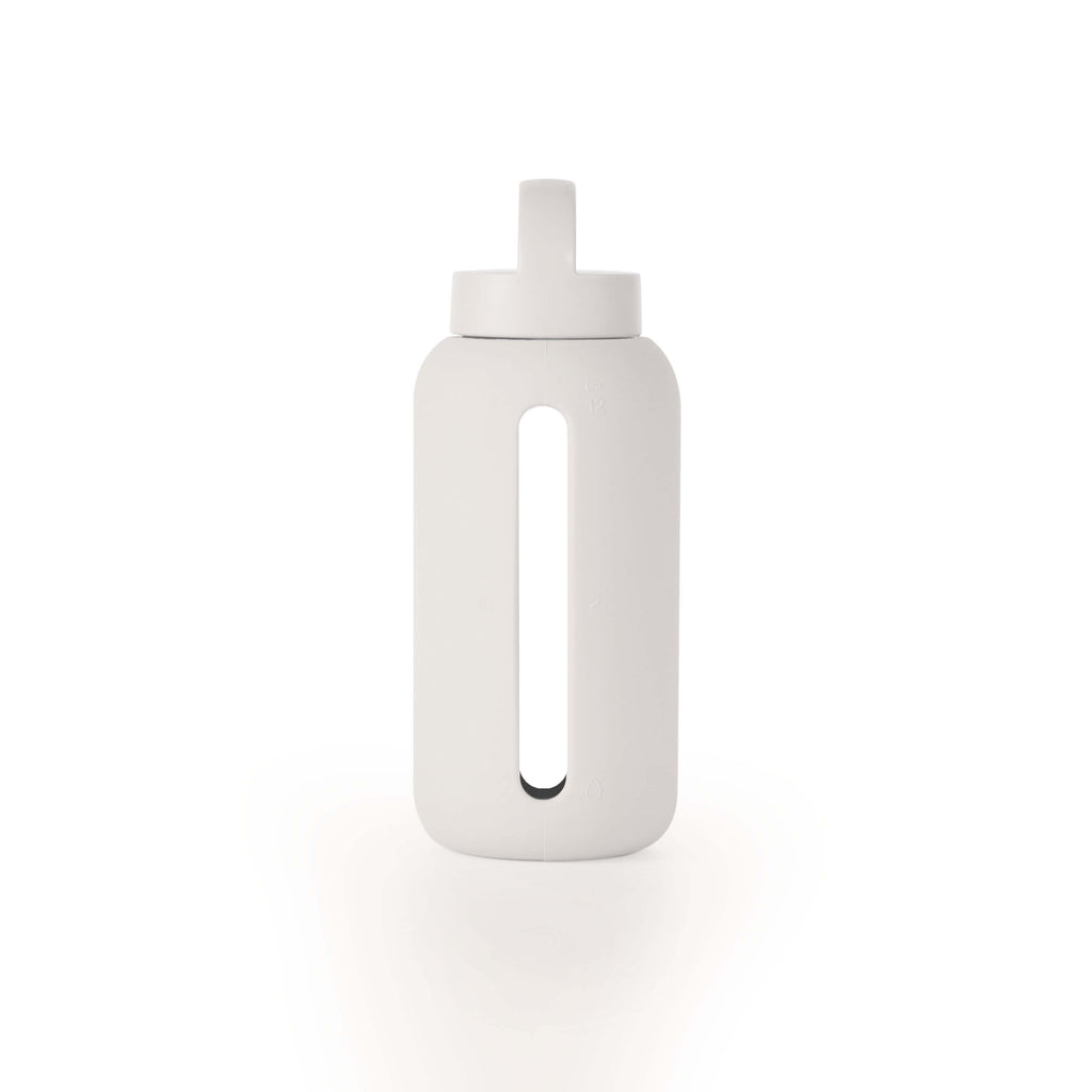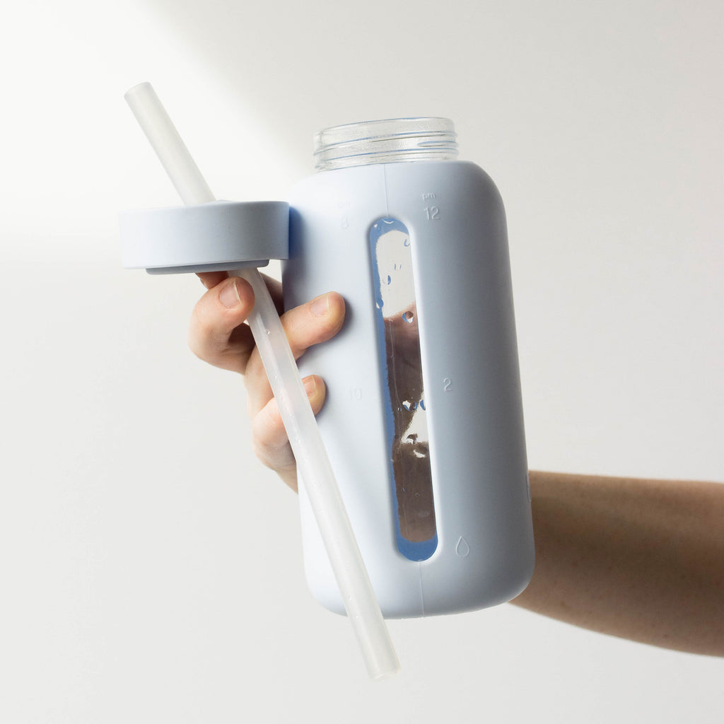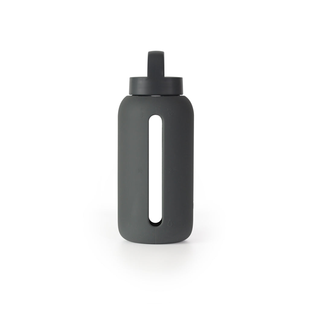 This sleek glass water bottle empowers you to be more mindful of the water you drink every day. Simple to-follow AM/PM time markings on the bottle sleeve help you see your hydration progress.