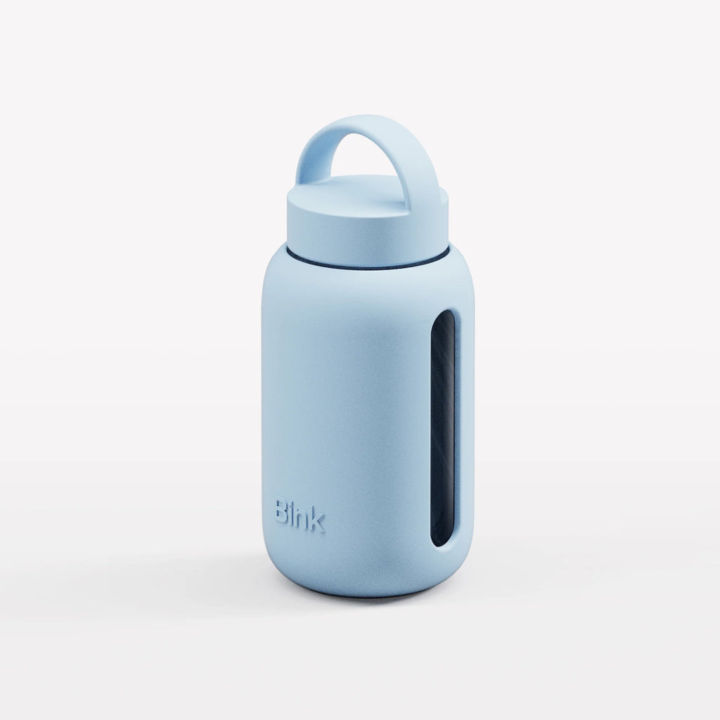 This mini glass water bottle is a fun and practical companion. It offers a convenient way to stay hydrated on the go. Ditch plastic bottles and opt for this little glass one instead!