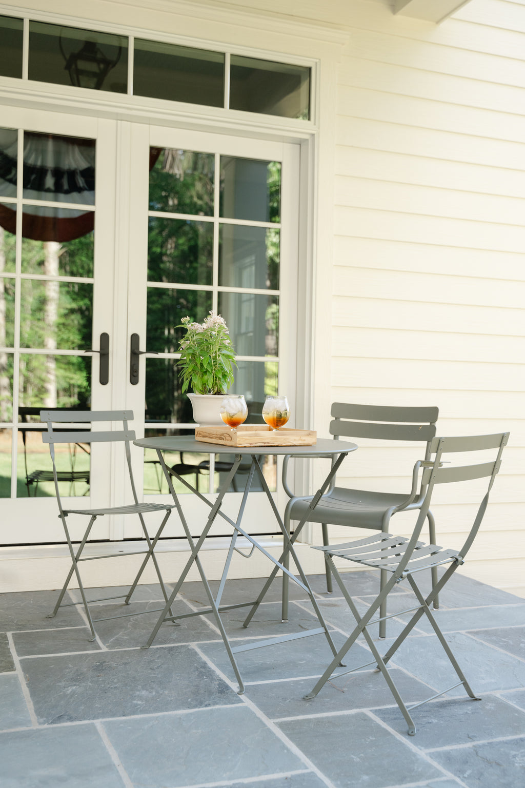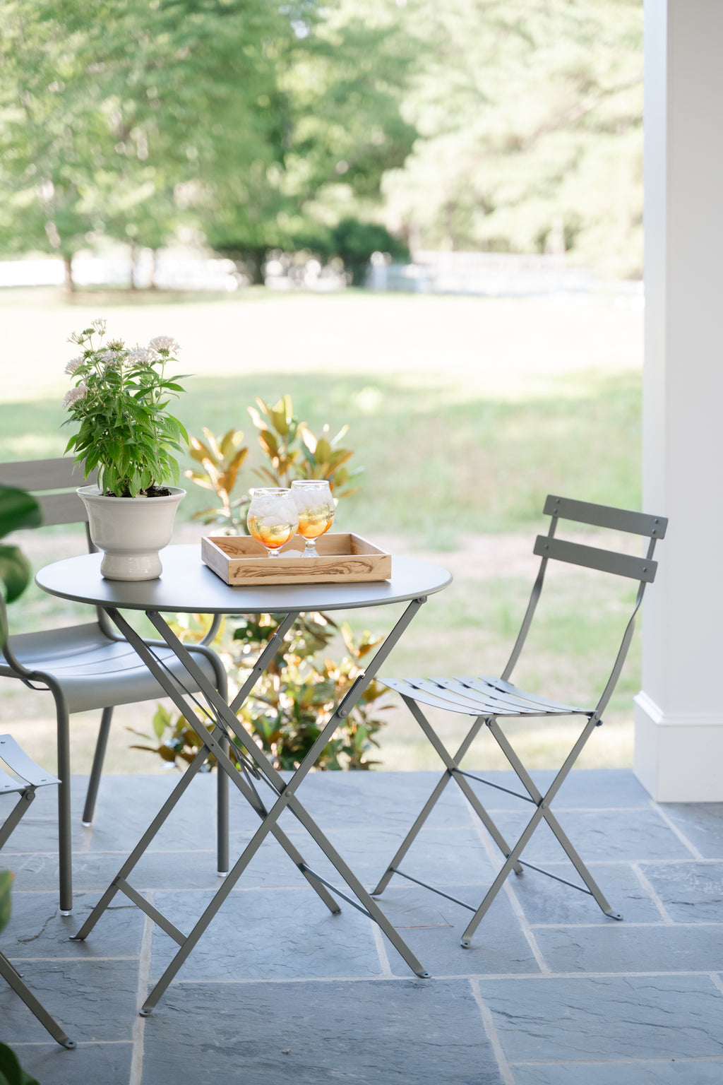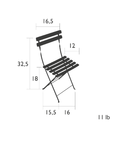 The Original Bistro Chair- designed in 1889 for the lemonade sellers in Paris. Our best-selling chair, and it's easy to see why! Made entirely in France, this movable furniture piece can be folded for easy and quick storage. Its versatility and portability make this petite, slatted chair ideal for every home. From small spaces to extra seating at dinner, its uses are endless. Perfect for apartments, parks, cafes, patios, balconies, and backyards. The metal Bistro chair with curved slats is made from one of the most sustainable, recycled metals: powder-coated steel. Fermob's timeless chair has a curved back that is designed for comfort. Its high-quality welding and materials also provide sturdiness to hold up to 275 lbs.
