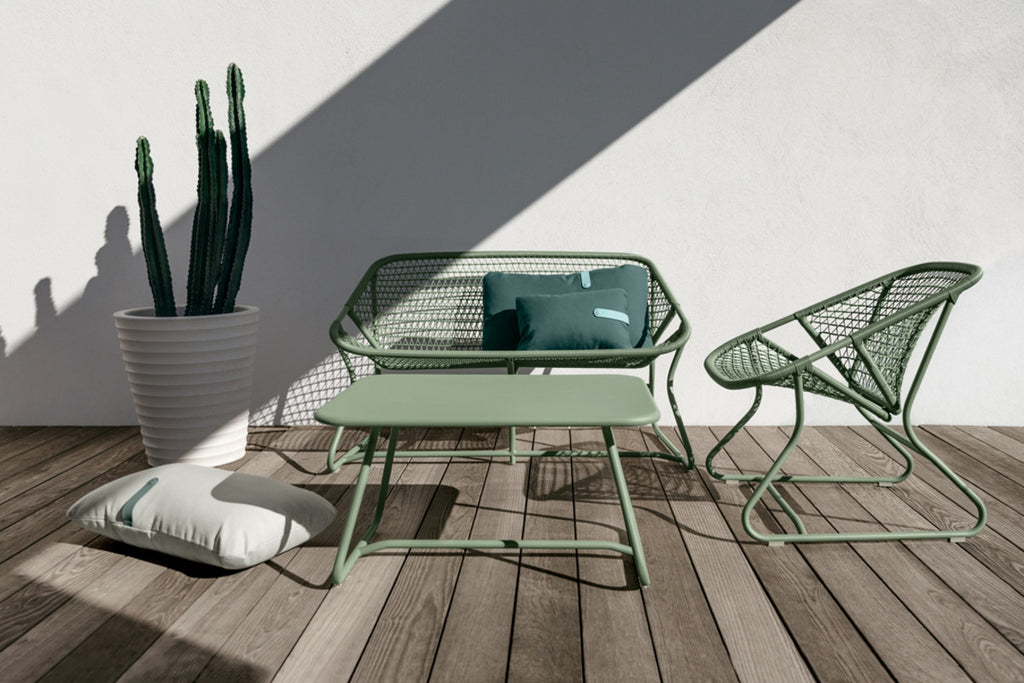 The Sixties low bench is perfect for those who want to stay comfortable and stylish. Designed by Frédéric Sofia, it embraces the trendy In & Out trend with its welcoming and reassuring cocoon-like shape. The resin seat, with its sensuous feel, is seamlessly paired with an aluminum frame, adding a touch of lightness to its design and everyday use. Soft curves and a compact yet sturdy build make this bench a must-have for any indoor or outdoor setting.
