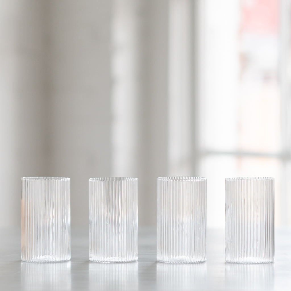 Inspired by small, delicate glasses traditionally used in French cuisine to serve little appetisers and desserts, this set of four mouth-blown glasses have a rippled surface that is distinctive to the series. Each glass can also be used as a lid for the Ripple Carafe and make an elegant addition to the Ripple collection at your table setting.