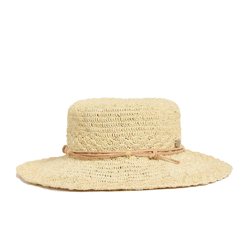 The Cape is Lorna Murray’s sophisticated version of a classic sun hat, perfect for long walks on the beach, catching-up with friends at a garden party or enjoying lazy days by the pool. It is carefully handcrafted in Ecuador with 100% genuine Toquilla straw and features a delicate crochet-style weave which is delightfully easy to wear. The soft brim is perfectly complemented by our deluxe leather trim and finished with our signature Lorna Murray brass logo.