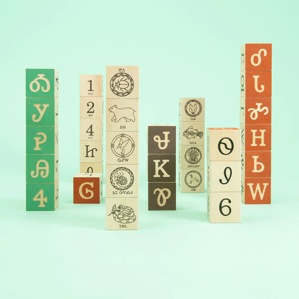 Explore 85 individual Cherokee characters debossed and printed with animal images and numbers. Teach the entire Cherokee syllabary as developed by Cherokee silversmith Sequoyah in 1821.