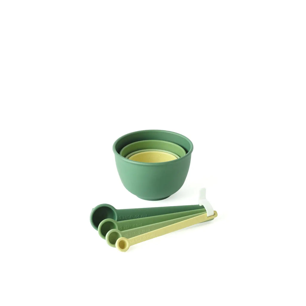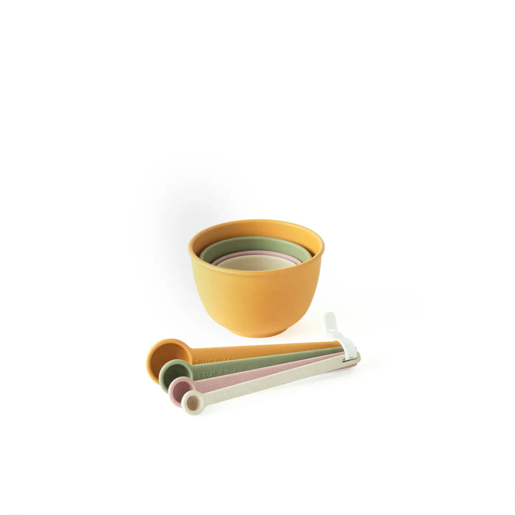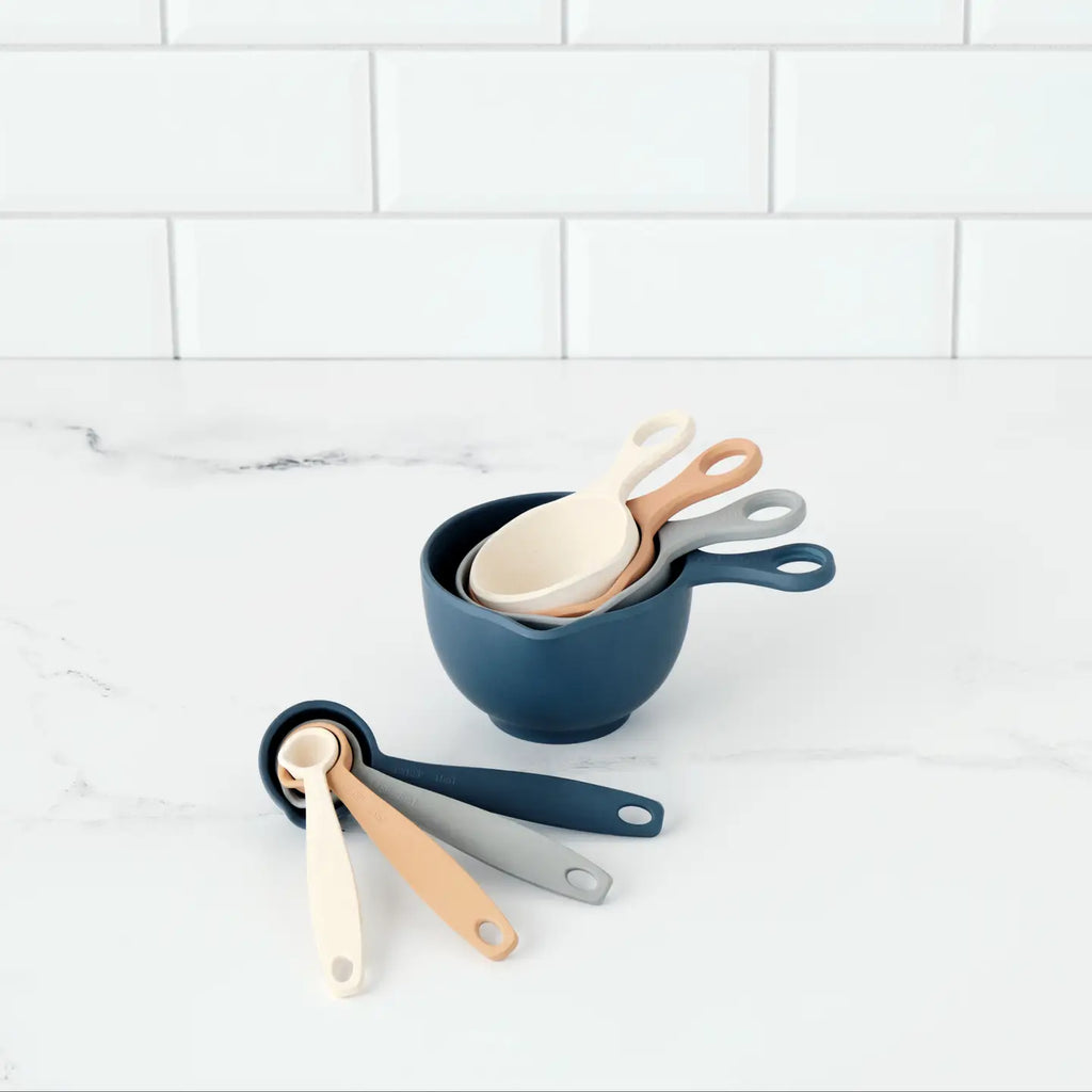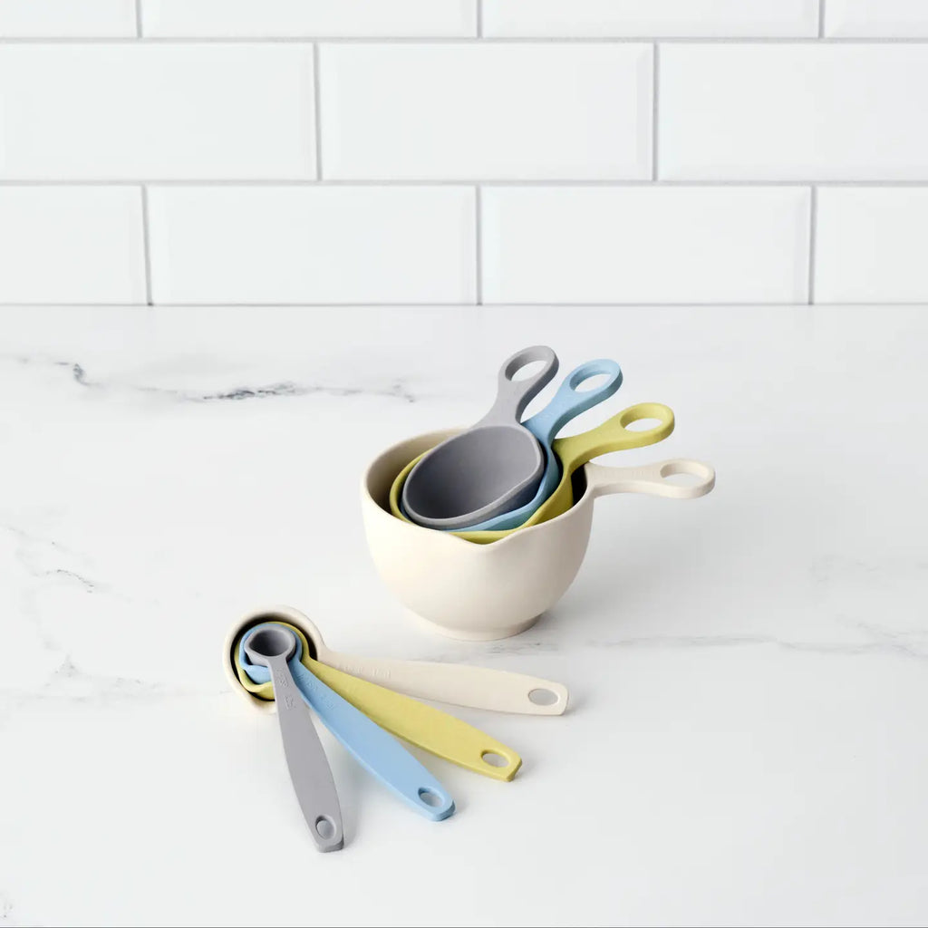 Make measuring ingredients easier and mess-free with our eco-friendly measuring duo set! Made from Astrik, a 100% plant-based plastic material, this set is the perfect alternative to traditional plastics that’s also biodegradable. Each measuring bowl features a beaded lip designed to minimize dribbling from liquid while our four long-stemmed measuring spoons are designed to reach into jars with minimal fuss.
