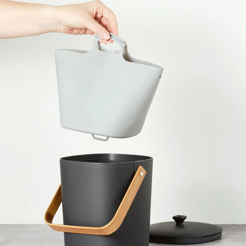 Keep that beautiful bin pristine as you go about filling it up. When it's time to empty, simply lift the liner out and walk it to your compost pile or collection bin. It even has a grip loop on the bottom so you can keep your hands out of the way as you pour out your scraps.
