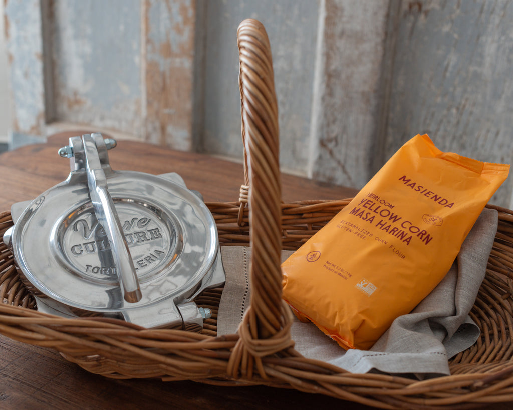 Comes with three taco recipes, and instructions to make the perfect corn tortilla using only masa flour and water.