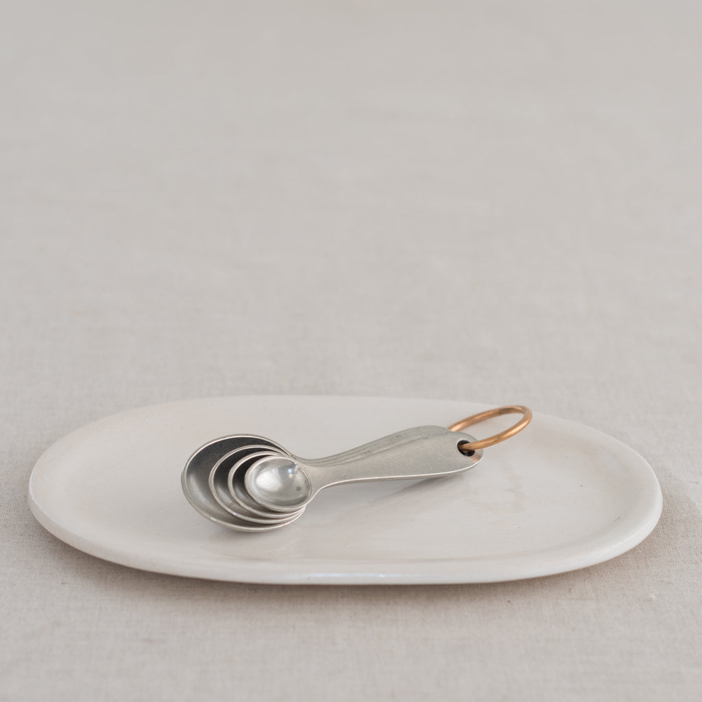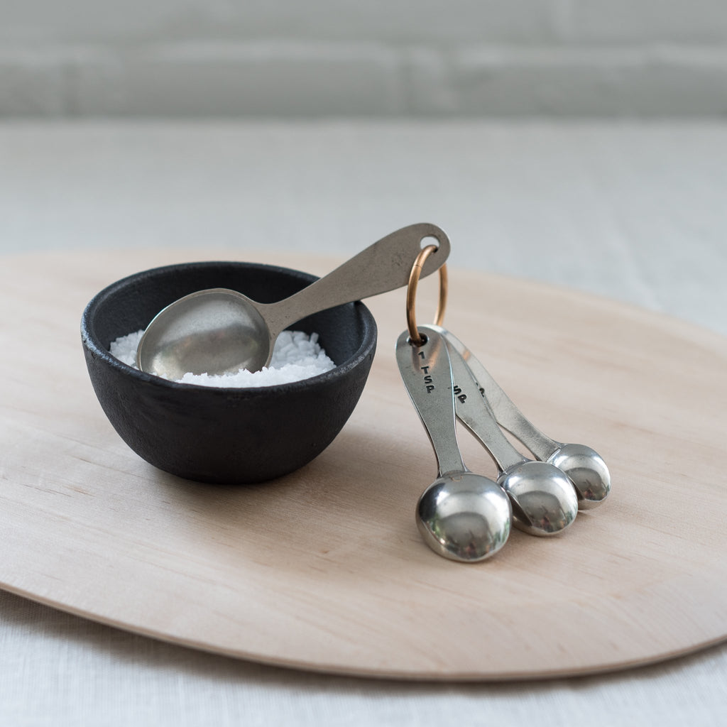 Pure and simple measuring spoons are an homage to the beauty of the pewter material. For anyone who appreciates honest materials, and inspired classic design these minimal measuring spoons are perfect in a thoughtful, authentic home.