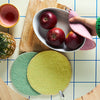 Constructed from 100% felted wool, this round potholder is both vibrant and durable. Providing superior heat resistance and ease of use, it is handmade using all-natural AZO-free colors for a safe and eco-friendly option.