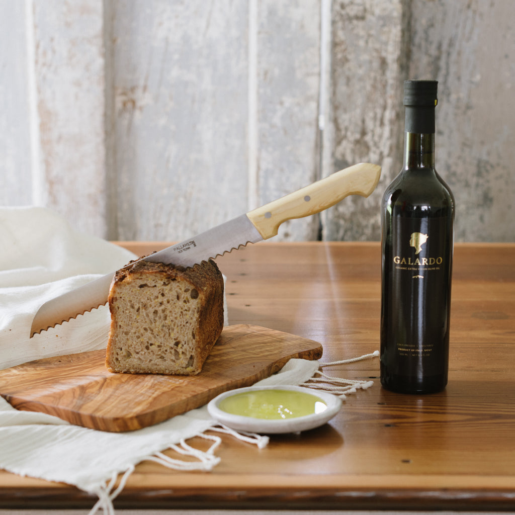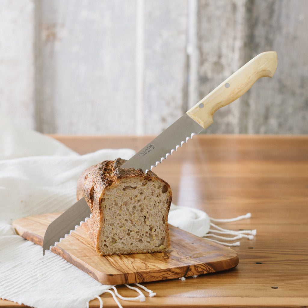 Hand-forged + honed in a 100+ year old workshop in Solsona, Spain, this Stainless Steel Bread Knife is made to last. Slice sourdough or your darkest, thickest rye with ease. Prepare your favorite sandwich or slice bread to serve with olive oil on the side.