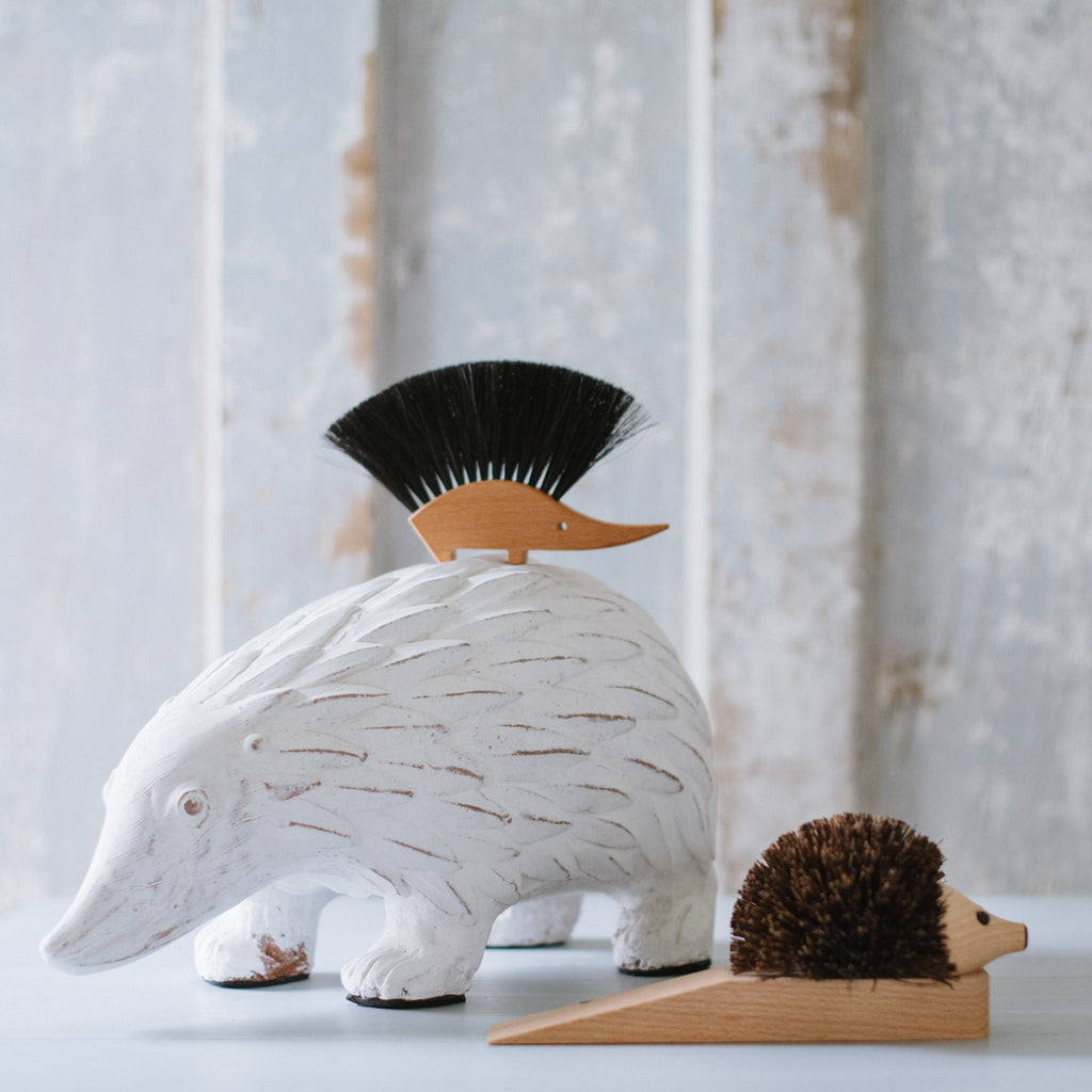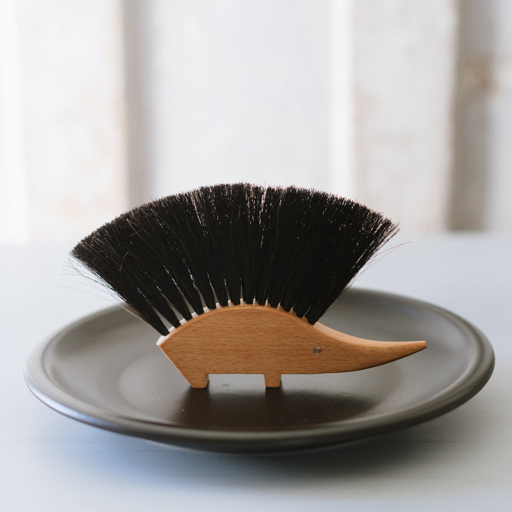 Hedgehog-inspired design for quick and easy cleanup of table crumbs; removes dust from computer keyboards and miscellaneous debris from arts and crafts working areas.