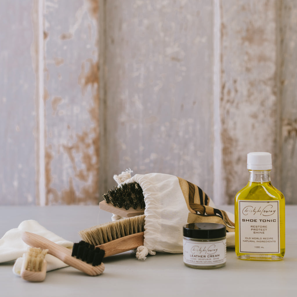 Made from pure beeswax, organic carnauba wax, avocado oil, and natural essential oils. Leaves a desirable scent and avoids the "shoe polish smell" on sophisticated items like leather handbags, furniture, or articles of clothing.