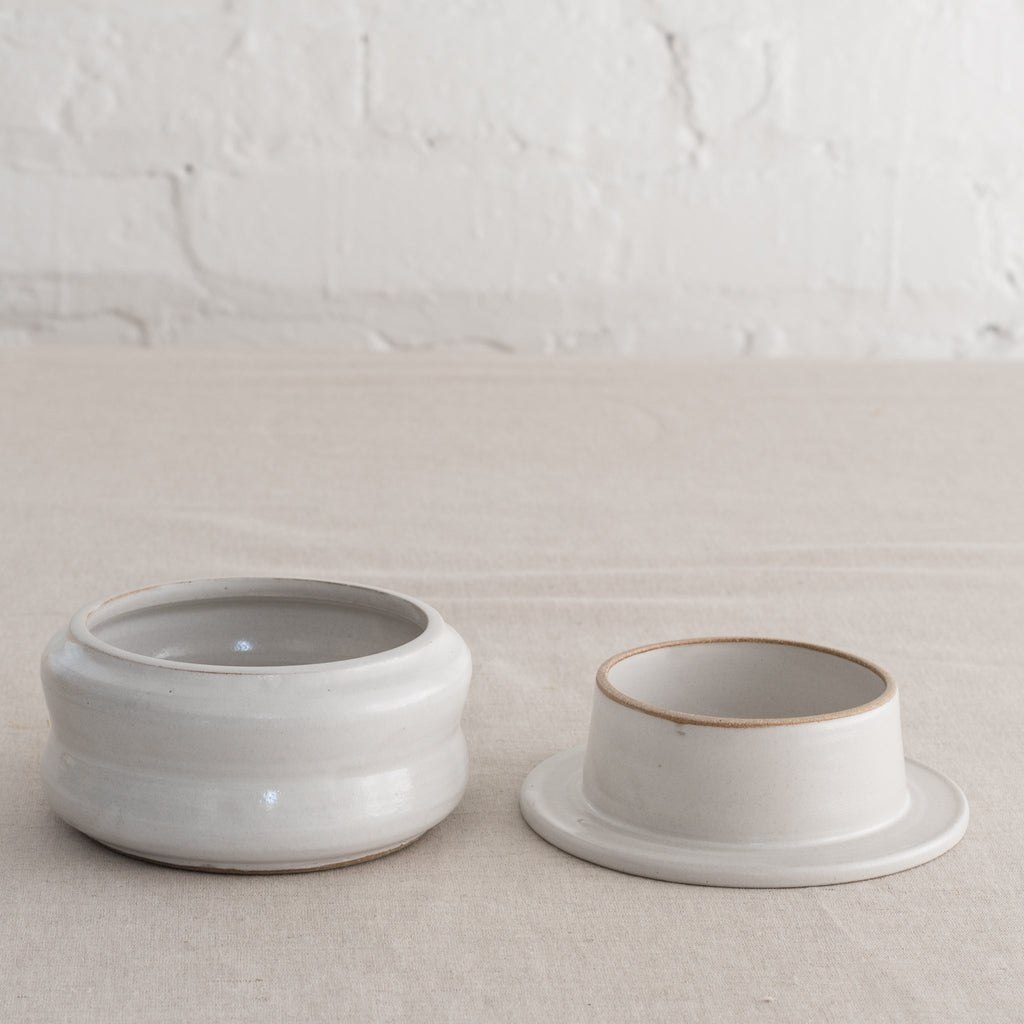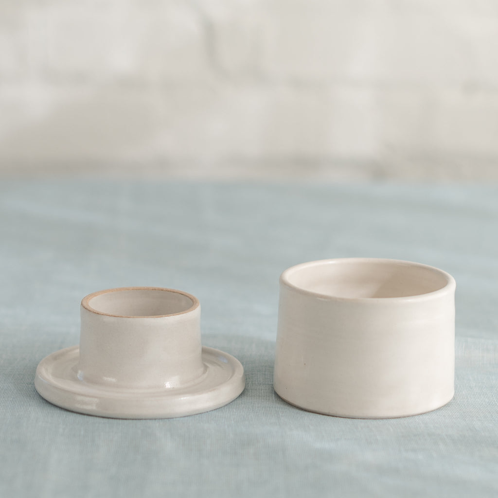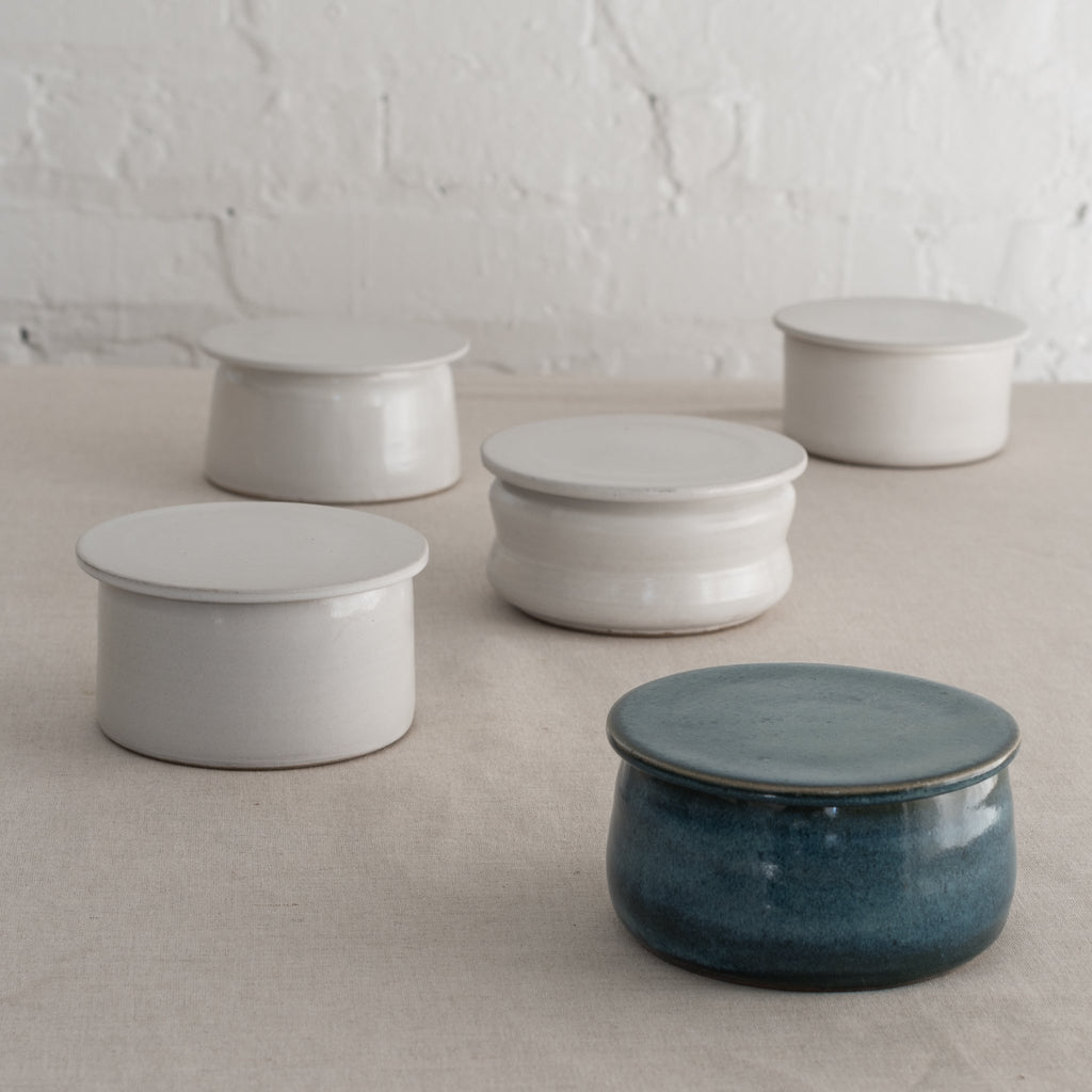 Wheel-thrown ceramic french butter crock j lovingly hand made in Western Pennsylvania. Shapes and size vary.
