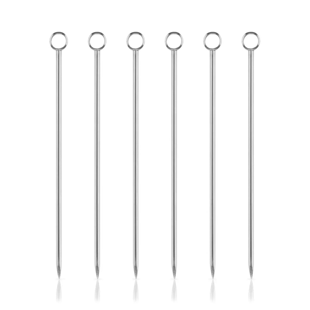 Elevate your cocktail presentation with this curated collection of six professional-grade stainless steel picks. Each piece features a refined steel ring accent, making them equally suited for securing olives in a martini, cherries in a Manhattan, or other garnish applications. Built to last through countless cocktails, these picks combine durability with understated elegance for the discerning home bartender.
