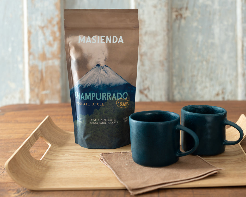 Champurrado is a chocolate-y version of an atole, a warm masa-based beverage enjoyed in various regions across Mexico. Its name is derived from the word champurrar, meaning "to mix," because this drink is traditionally frothed vigorously with a wooden mixing tool called a molinillo. While champurrado is typically prepared fresh for breakfast, Masienda has given it the packaged treatment for the moments when you need a quick, cozy fix. Their Heirloom White Corn Masa Harina joins single-origin 70% dark chocolate sourced by Dandelion Chocolate, cane sugar, cinnamon, and salt for a delicious pick-me-up.