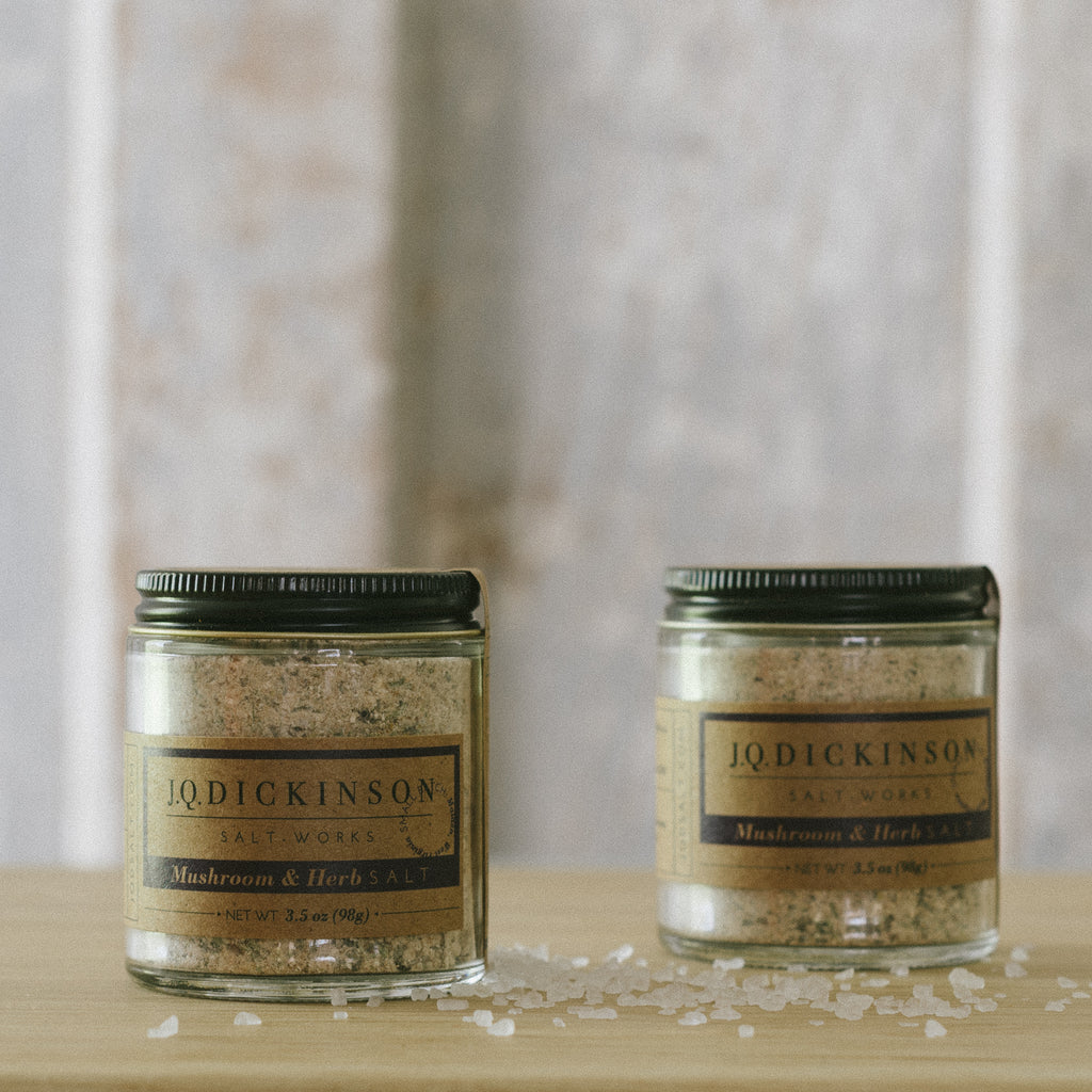 Mushroom Herb is a partnership with Hernshaw Farms which is turning mine land to farm land with their mushroom blocks. A blend of several mushrooms, rosemary, thyme and black papper. This salt is a natural for meats before cooking. It is also great on tofu and roasted vegetables.
