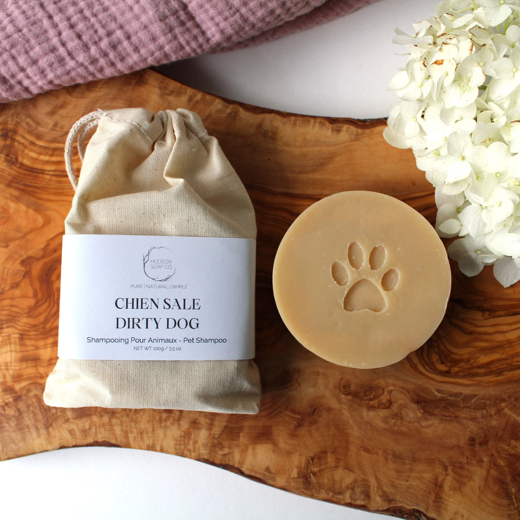 Introducing Dirty Dog Pet Shampoo Bar specifically formulated to cleanse and moisturize your pup's skin while effectively washing away dirt and odors from your dogs coat. Carefully crafted with gentle and nourishing ingredients like neem oil for its antibacterial, anti-microbial, and flea-repellent properties.