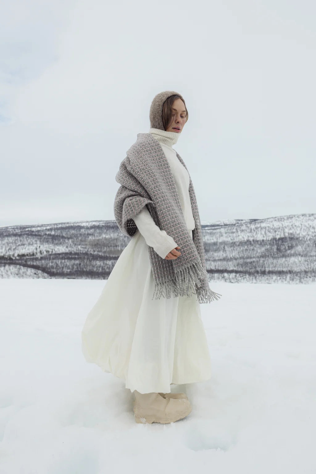 100 % wool – and pleasant warmth. Both the weft and the warp yarn are made from the wool fibres of Finnsheep and Finnsheep crossbreeds, which we have obtained from the local farms in Finland, as well as from certified Wool Integrity NZ fibre. All yarns are spun and dyed in the EU area and are mulesing-free wool.