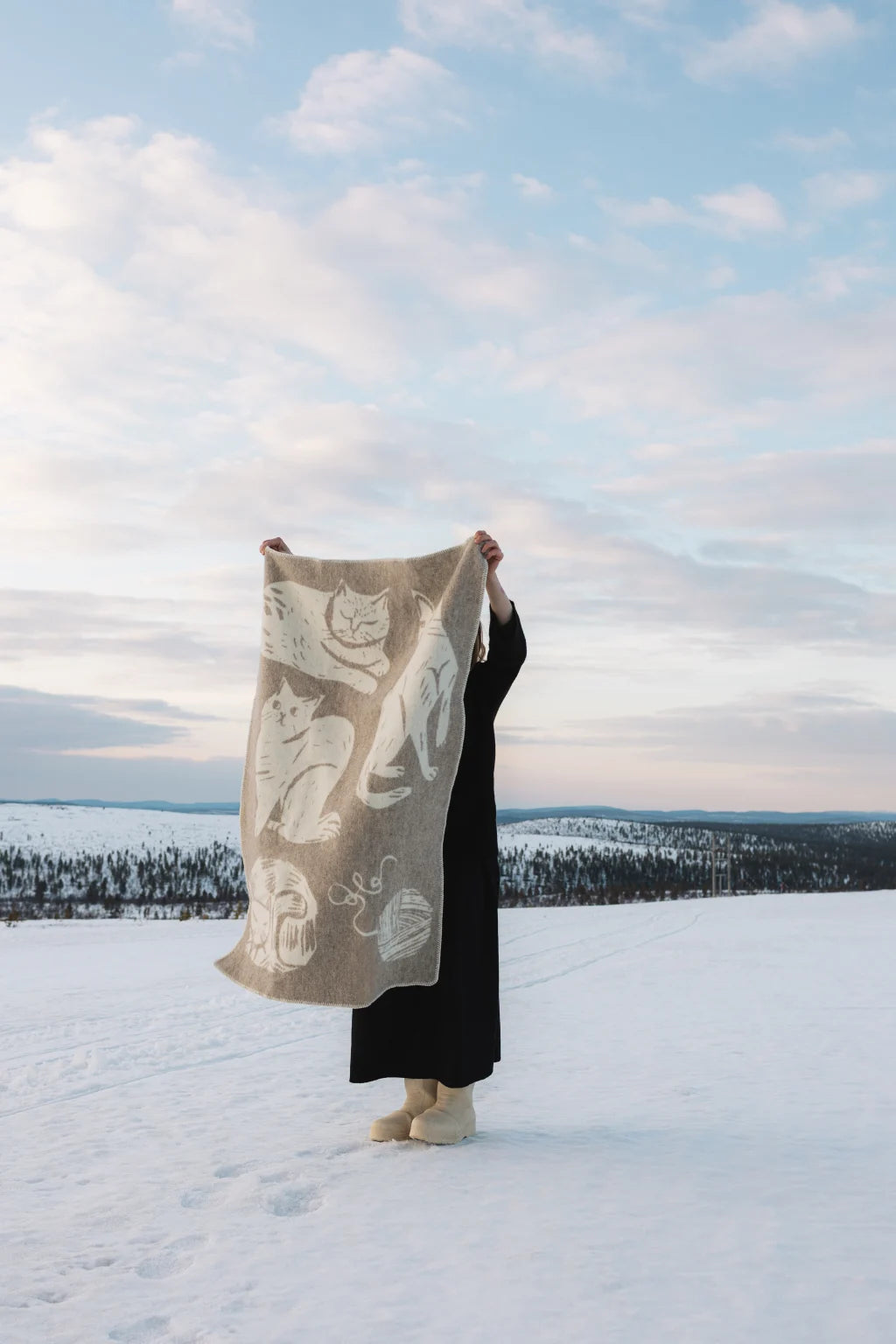 The KISSANPÄIVÄT blanket features original artwork by Matti Pikkujämsä. Crafted to be exceptionally soft and gentle against the skin, it offers a cozy experience perfect for curling up on the sofa. This blanket also makes an ideal gift for adults, particularly cat enthusiasts who will appreciate its unique design and comfort.