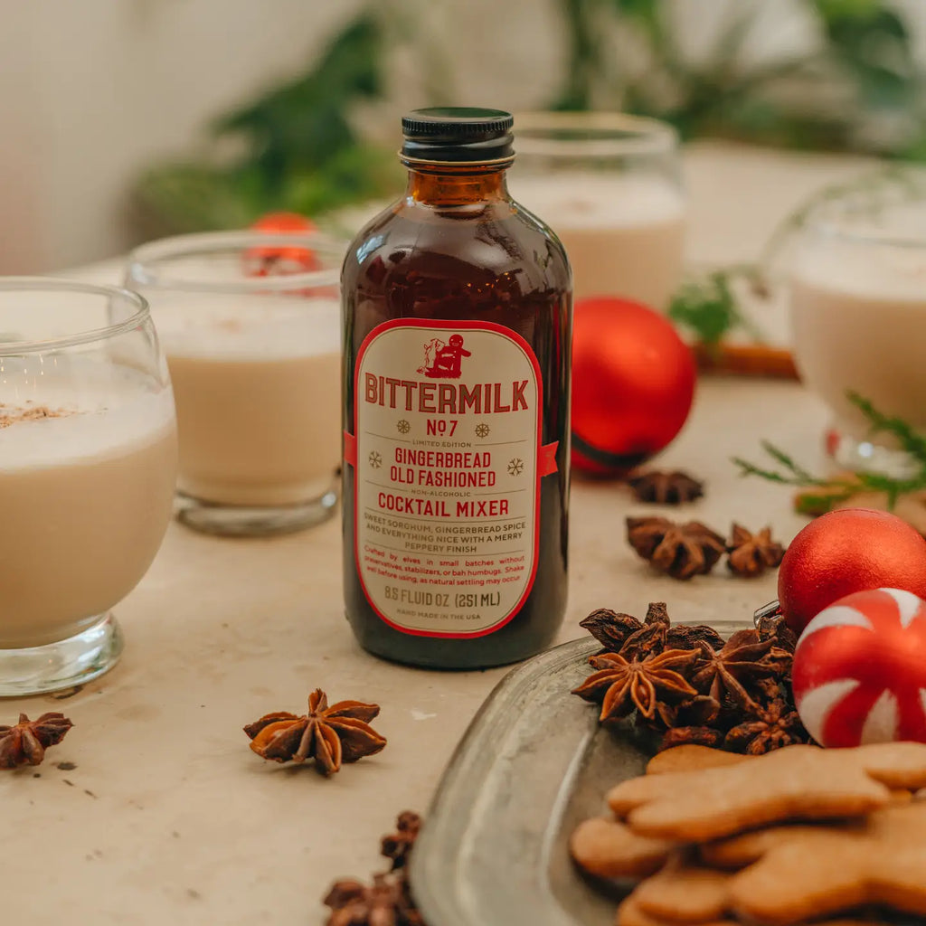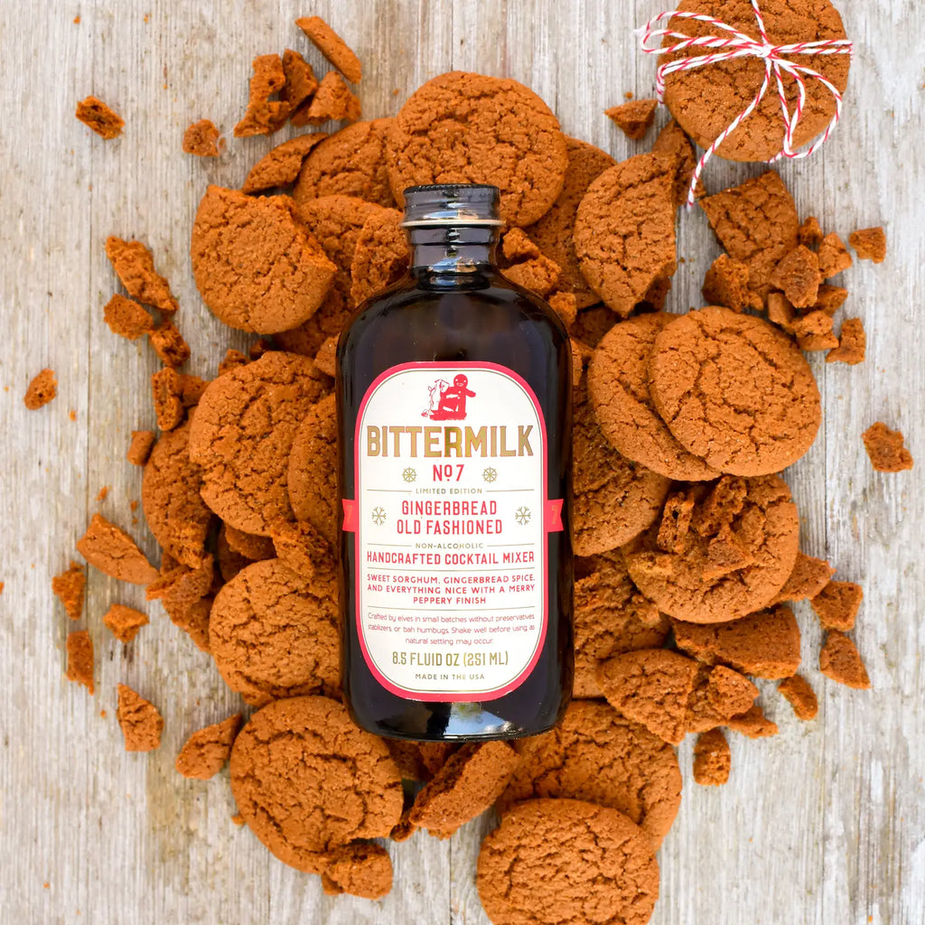 Bittermilk No. 7 Gingerbread Old Fashioned is crafted for the holiday season, blending sweet sorghum and gingerbread spices with a lively peppery finish. Perfect for mixing a classic old fashioned or a simple twist on eggnog.