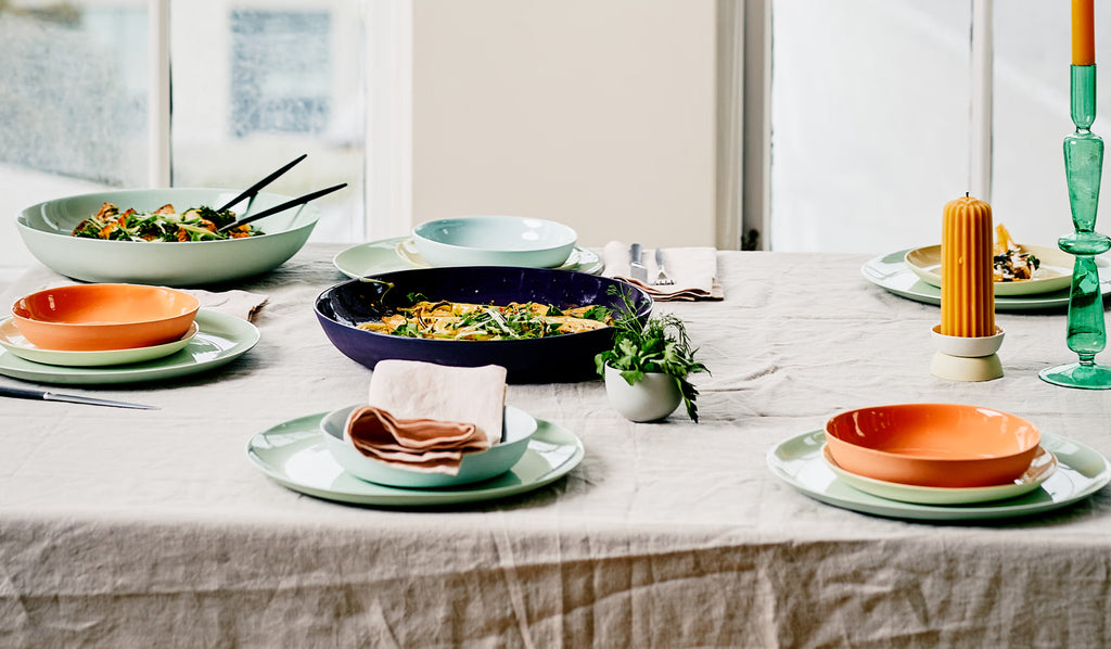 To avoid glaze scratches, ideally your mud porcelain will be stored in plate racks or with linen/felt between each item. Please note: Ink, orange, plum, red and slate porcelain are expensive colours and trickier to produce, hence the higher item price.
