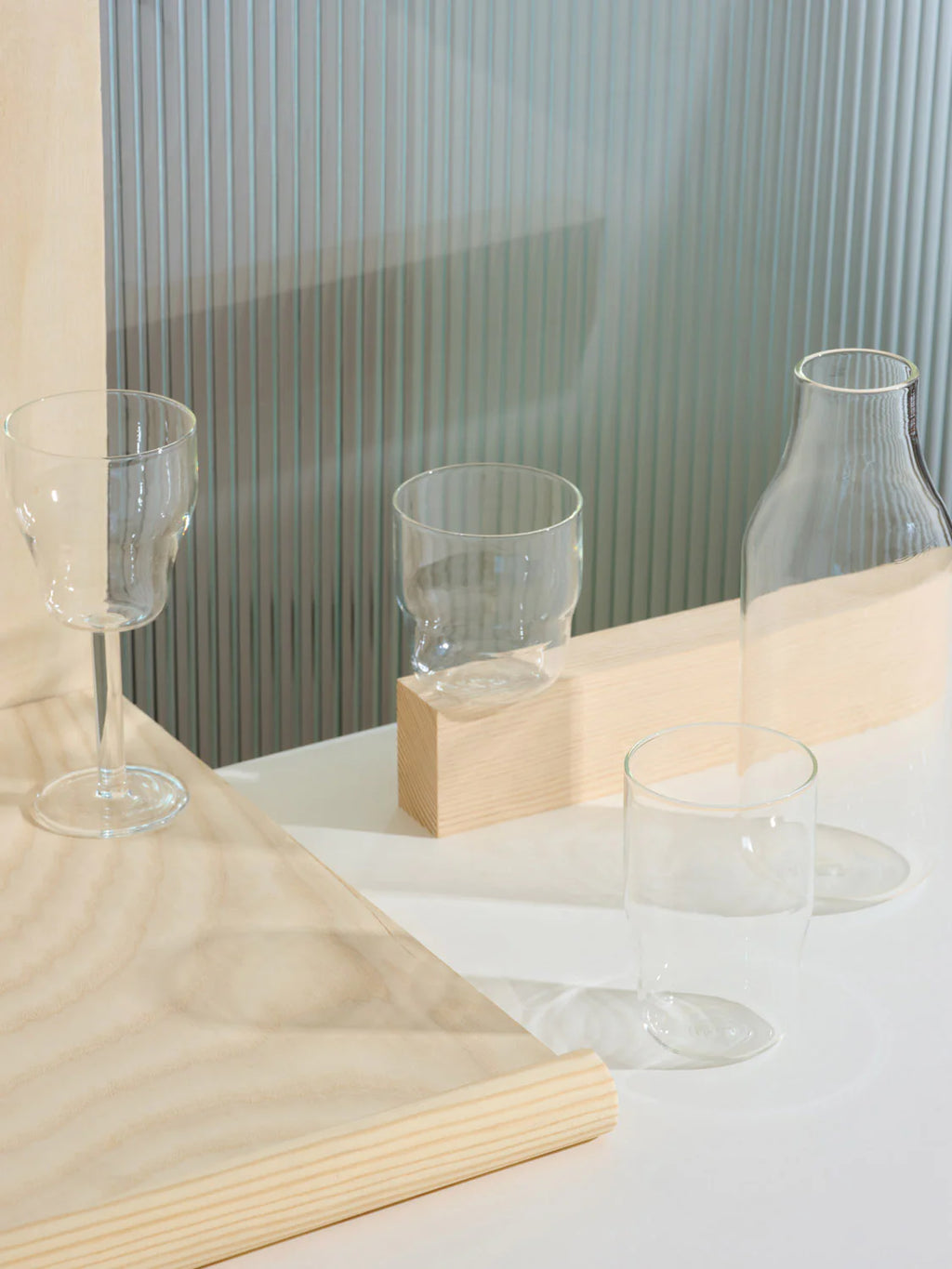 This piece of glassware is crafted from Borosilicate glass known for its pure and resistant quality, shaped with traditional mouth blowing technique; the innovation of design comes from modern shapes inspired by aesthetics of rationalist and modernist architecture whilst respecting its functionality. The result gives each piece a simple elegance.