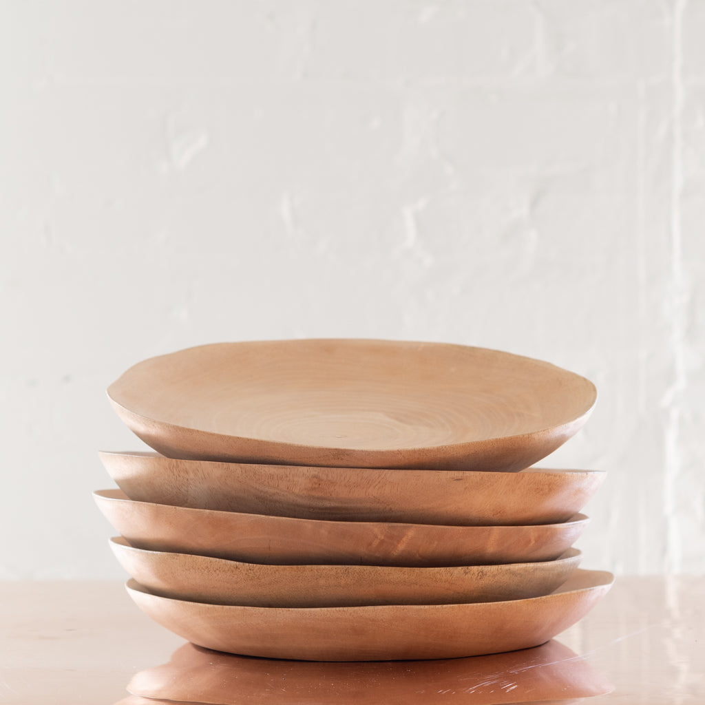 Our Large Mango Wood Plate is the perfect addition to any modern culinary setting. This natural beauty is handcrafted from beautifully aged mango wood, infusing its own set of natural striations and subtle highlights.