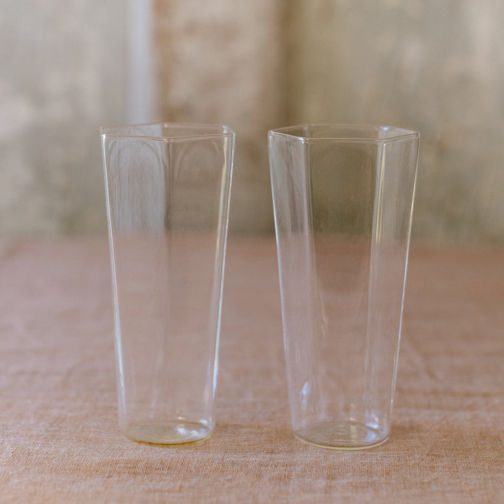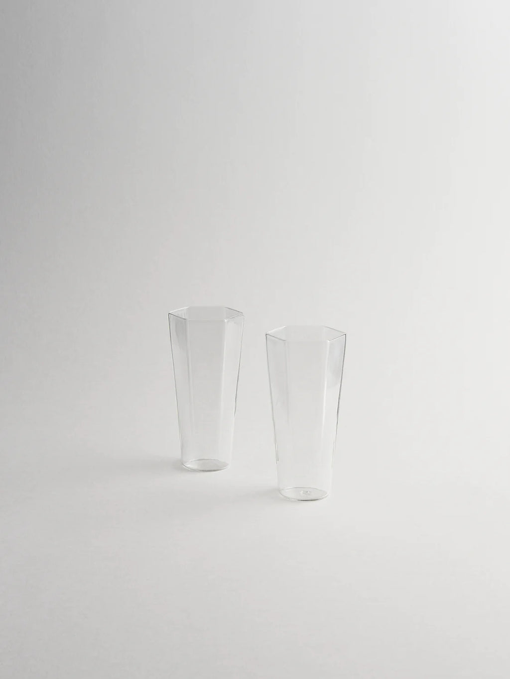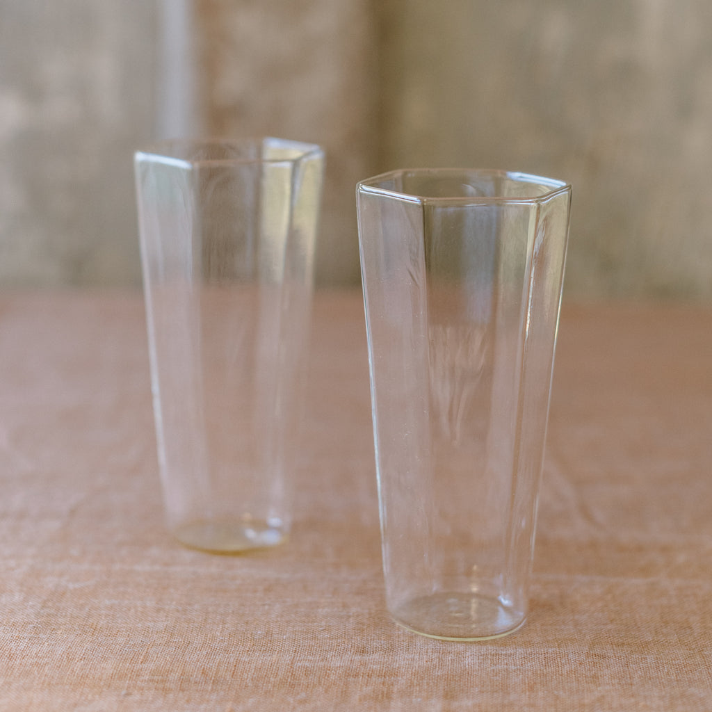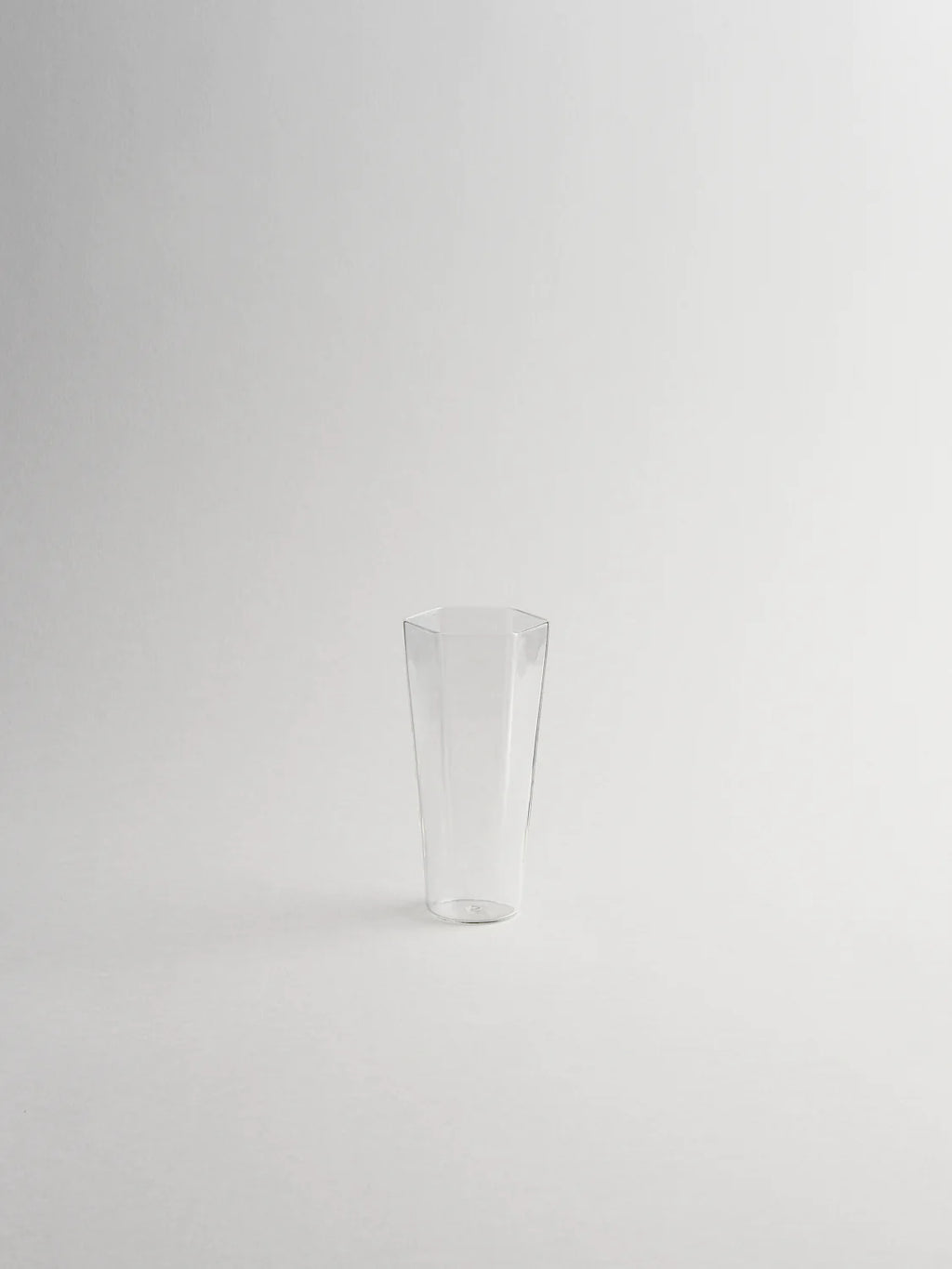This piece of glassware is crafted from Borosilicate glass known for its pure and resistant quality, shaped with traditional mouth blowing technique; the innovation of design comes from modern shapes inspired by aesthetics of rationalist and modernist architecture whilst respecting its functionality. The result gives each piece a simple elegance.