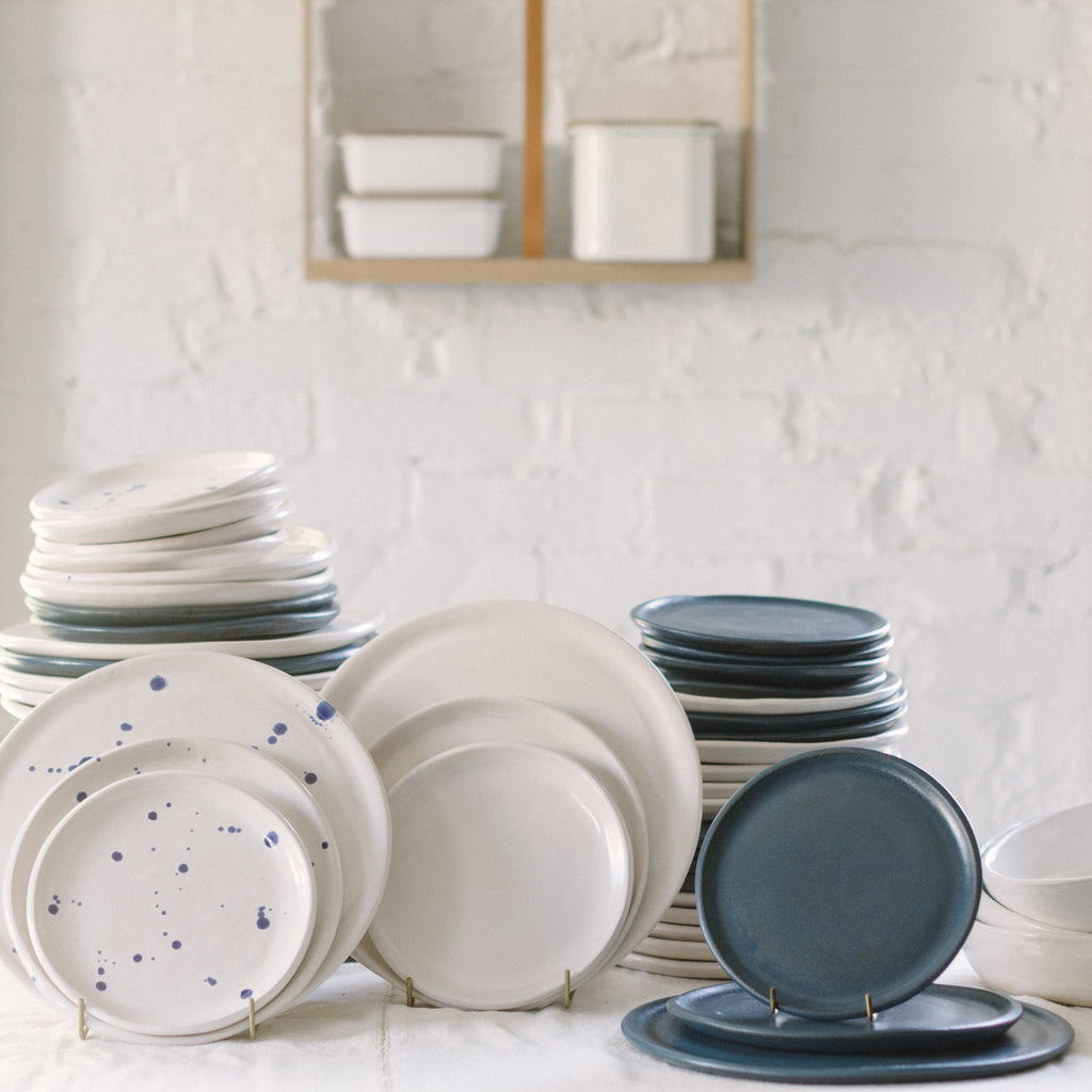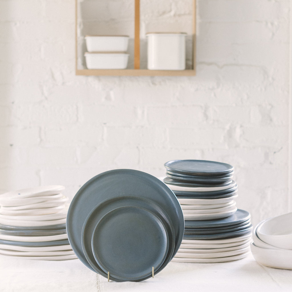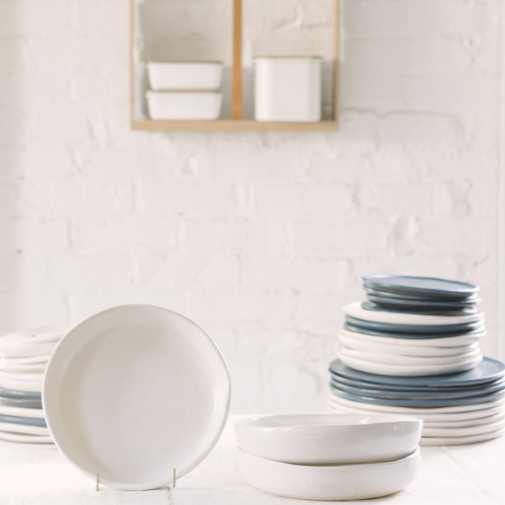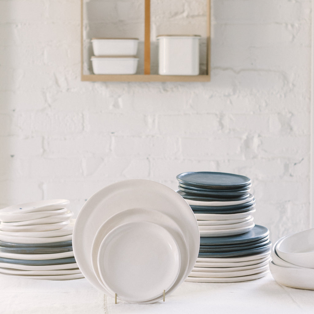 Slab plates and bowls are hand-cut and individually formed from durable stoneware clay, so each piece is unique. The relaxed, organic forms and subtle undulations shine when this dinnerware is stacked on the buffet table or open shelving. Though meant for everyday use, the wide plating area and contemporary design make Slab dinnerware ideal for food photography and entertaining experiences. Dishwasher and Microwave safe.