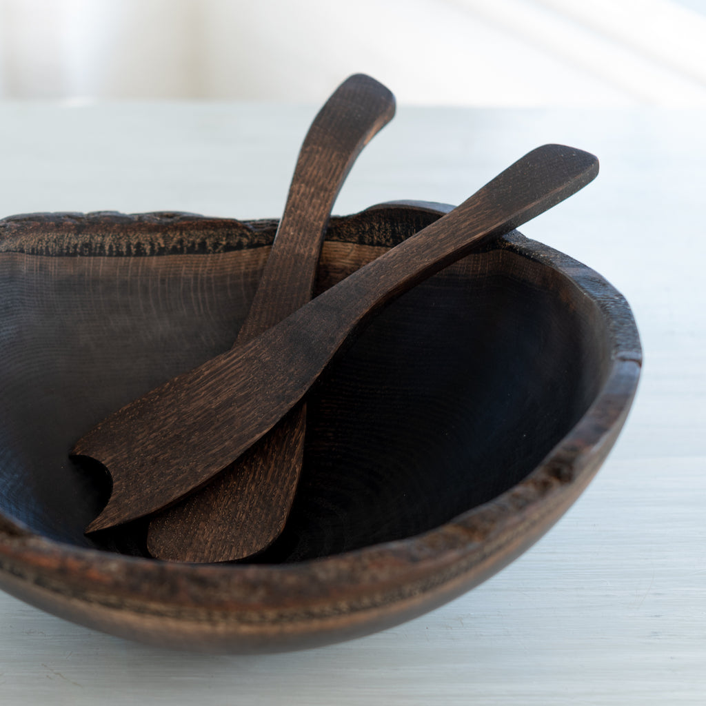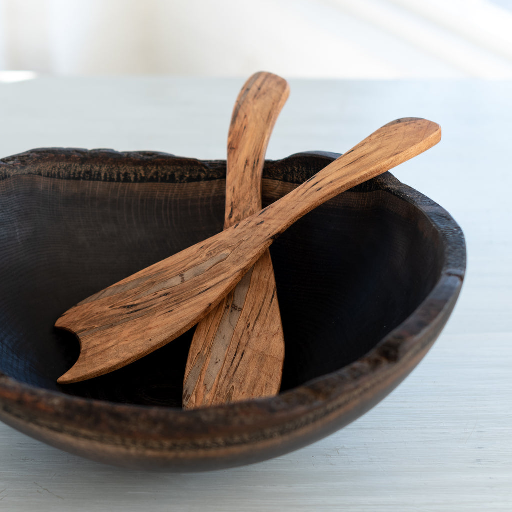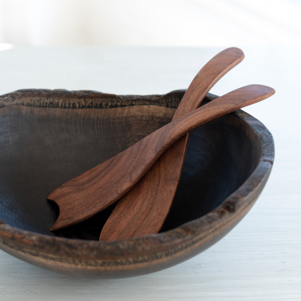 Toss leafy greens with a well-crafted, artisanal flair. These hand-made salad tossers have an elegant and slightly bowed shape. They are sustainably sourced, upcycled, and handcrafted in New England.