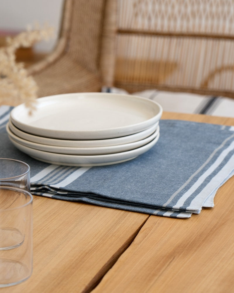 A tabletop addition designed to decorate, protect and entertain, our Warp Stripe Placements also feature a true selvedge. Particular only to looms that use a shuttle, a selvedge is a tightly woven, non-fraying edge. The result is a placemat with a classic finish, that requires no extra hemming.