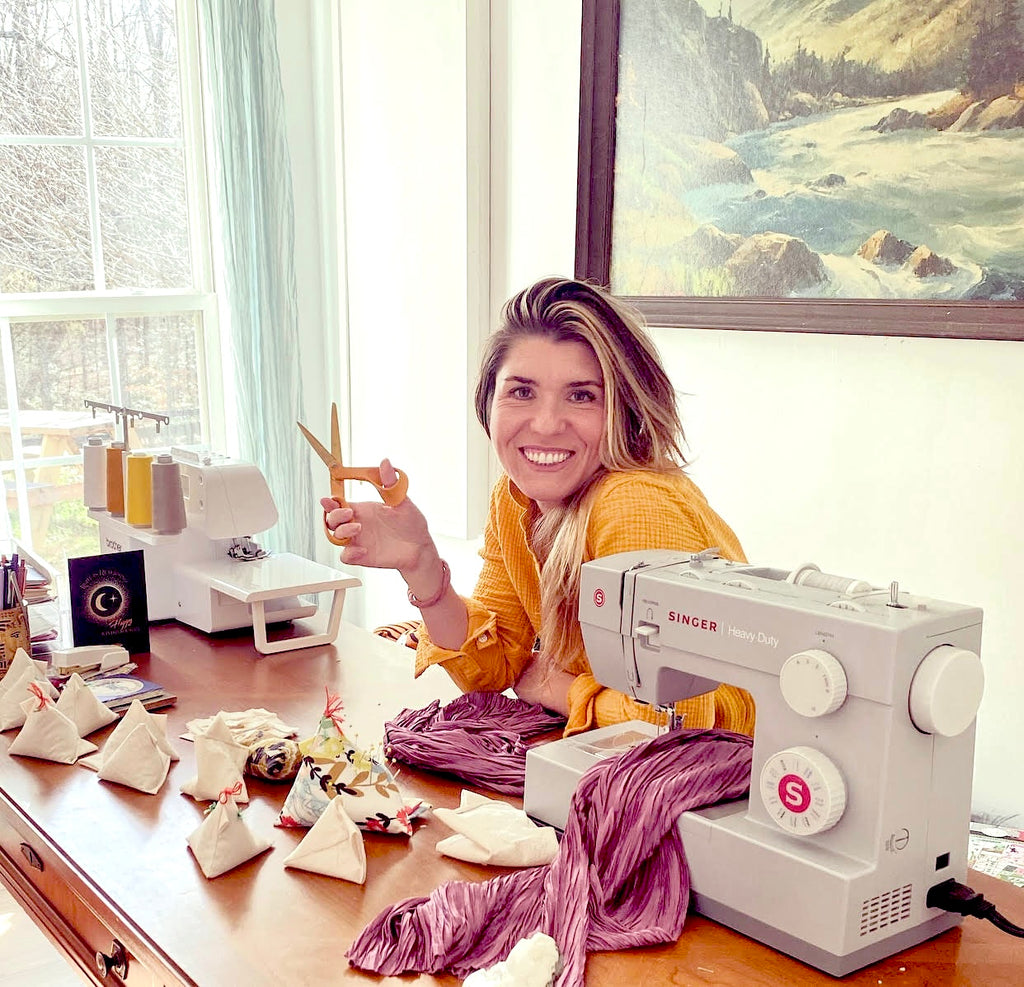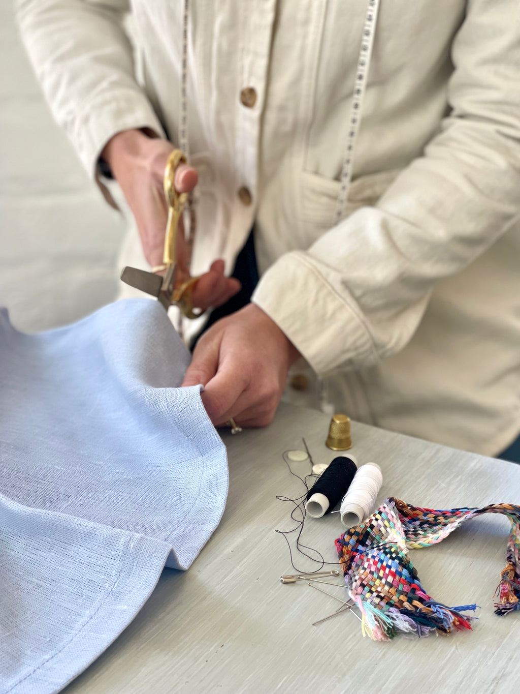 Our instructor, Alexa, has loved sewing since she was little. Self taught, but she picked up a lot of knowledge about working with different fabrics and alterations from her time at Ralph Lauren. After her first son was born she took things to the next level and started an eco-friendly baby clothing company called ‘Son of a Binkie’. She specializes in mending clothing, and has had a lot of practice in this from her three less-than-careful children.